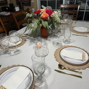 ·ELEGANT GOLD DINNERWARE SET: Our disposable plastic plates and cutlery sets are color-coordinated, with the transparent center of the gold plastic plates enhancing the color and texture of the food, while the inlaid gold lace adds a luxurious touch to the product,which make our elegant party decoration sets suitable for all occasions