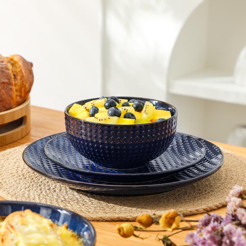 The royal blue tableware highlights the relief craft, and the kitchen can also be very distinctive.#dinnerware #kitchen #malacasa #tiktokshoploveatfirstfind #modern #dinnerset #fyp #homedecor