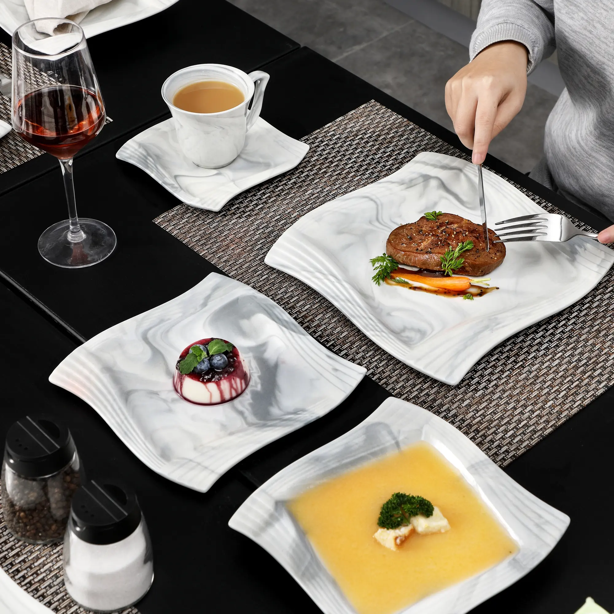 ·Festures with special design on edges, unique and modern, different plate set fit for all various dining environment.