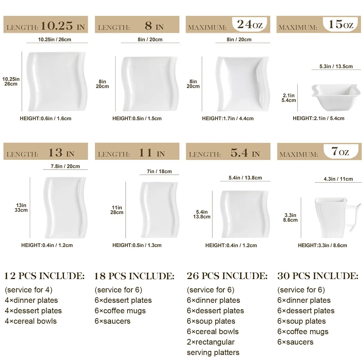 26 pieces dinnerware set includes