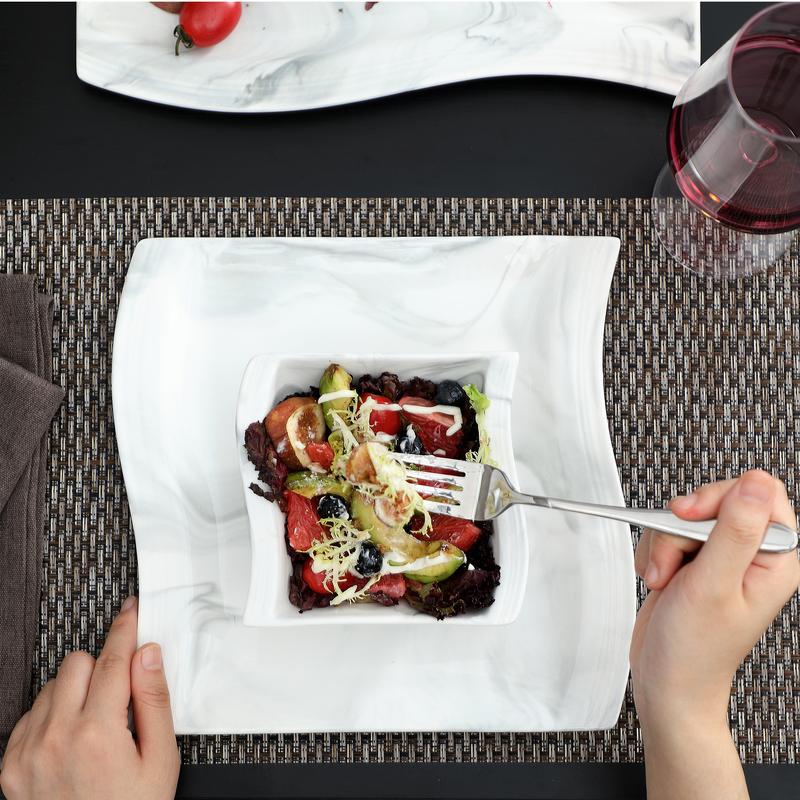 Unlike traditional ceramic crafts, we use ORC porcelain clay and elevate the firing temperature to 2552°F, this process enhances the scratch and heat resistance of MALACASA porcelain plate set, ensuring longevity for your dining essentials.