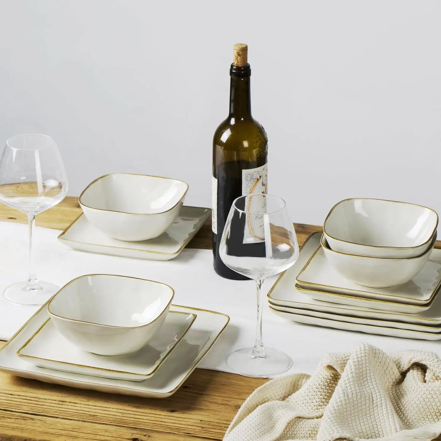 Famiware Ocean Square Dinnerware Sets for 4, 12-Piece Kitchen Plates and Bowls Sets, Microwave and Dishwasher Safe, Sturdy Tableware #fyp #dinnerware #tiktokshop