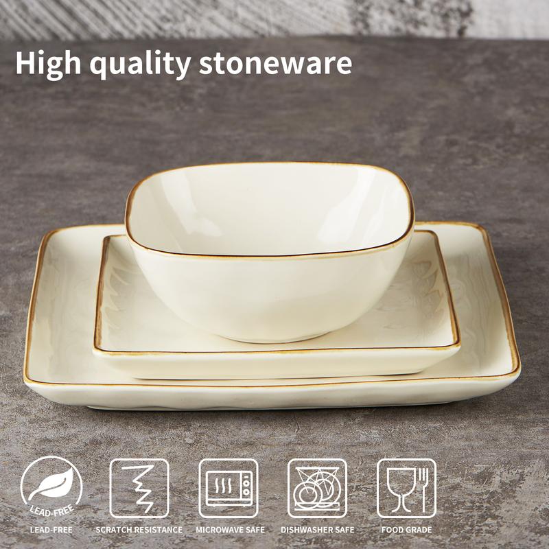 Famiware Ocean Square Dinnerware Sets for 4, 12-Piece Kitchen Plates and Bowls Sets, Microwave and Dishwasher Safe, Sturdy Tableware