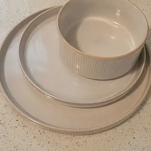 Very good quality dinnerware set that goes with everything and is a neutral color.