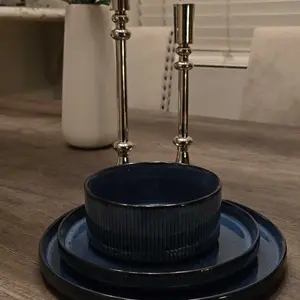 This dinnerware set is absolutely beautiful! Color and glaze on these plates and bowls are stunning!