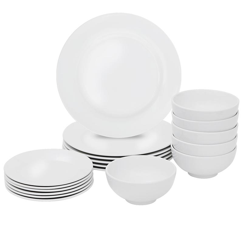 Six 10.5" dinner plates, six 7.5" dessert plates and six 5.5" Bowls, up tp 6 person big family.