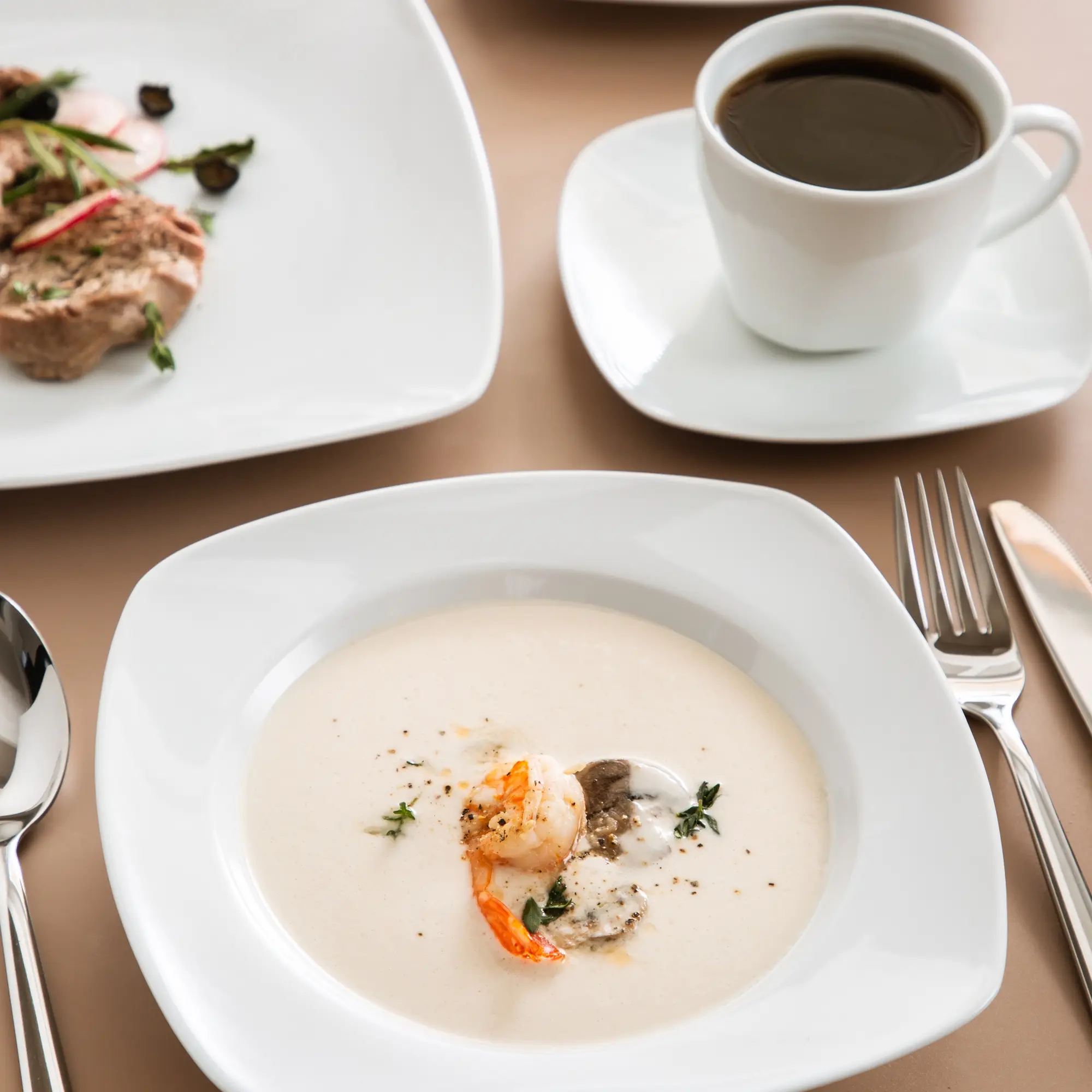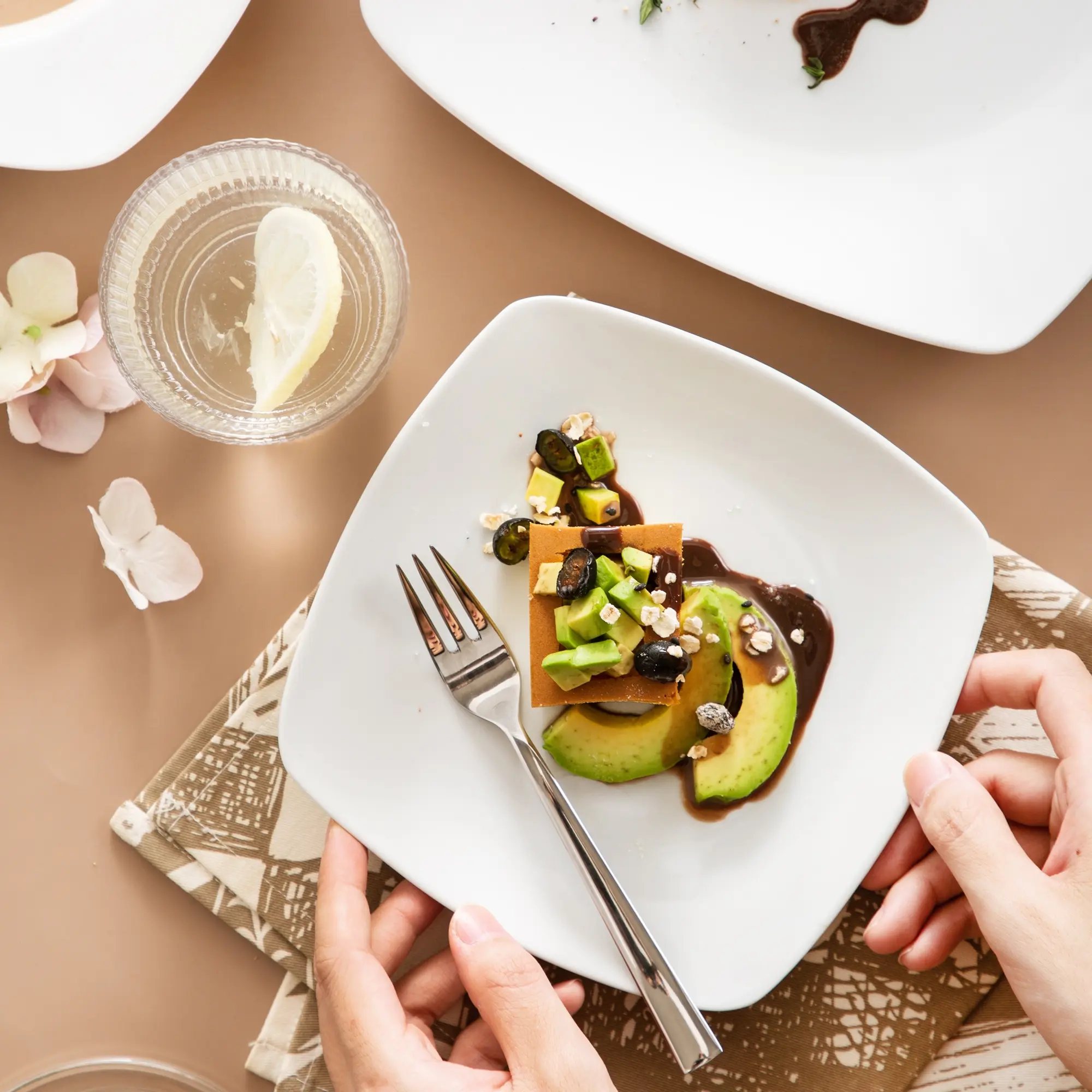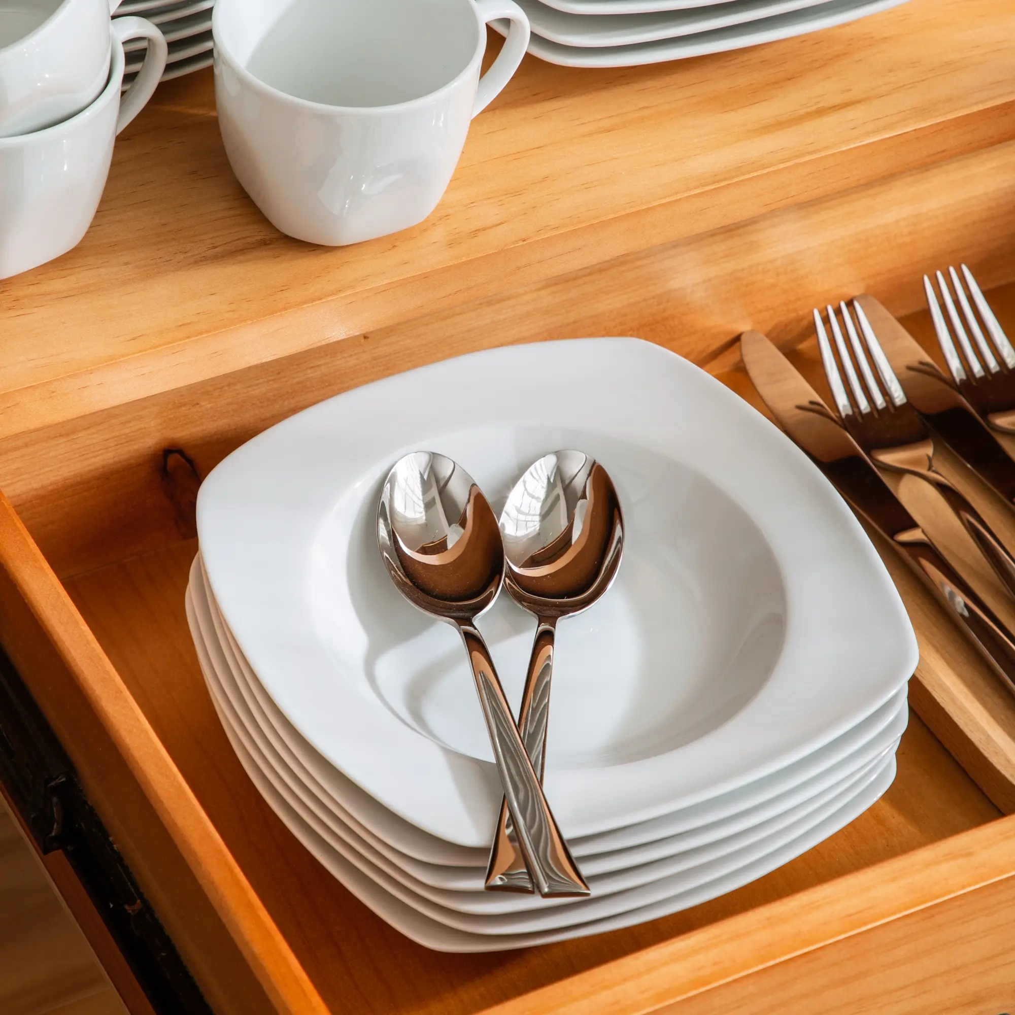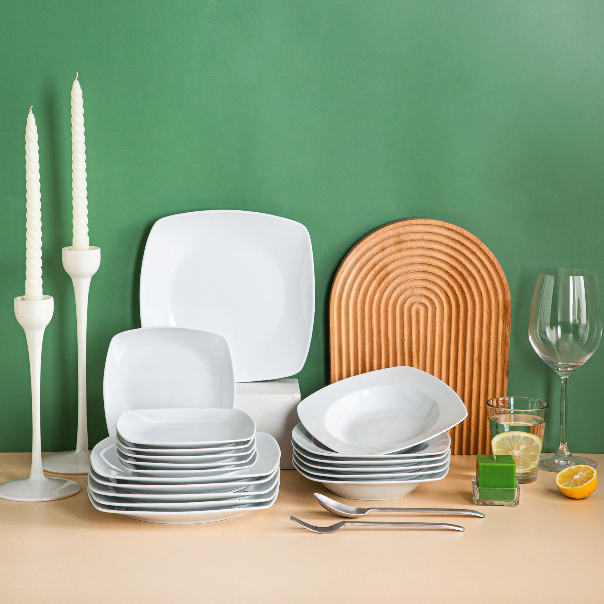 Our square dinnerware sets are made of premium porcelain and are non-toxic and safe for hot and cold foods and everyday dining. With a glossy beige finish and square and round designs, our dinner plate sets bring style to every kitchen and are perfect for casual or formal dining.
