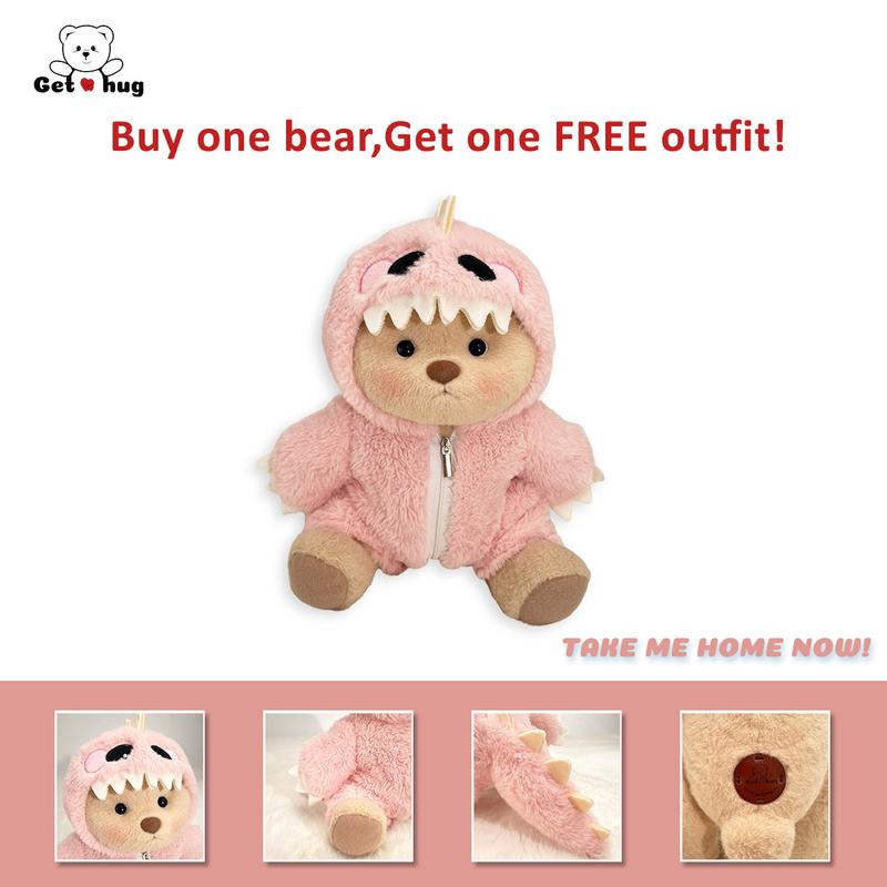GETAHUG 5-Poseable Joints Dino Teddy Bear - Changeable Outfit Super Soft Huggable Plush Toy 12" Standing Height Handcrafted Unique Design Perfect Gift for Any Age Teddybear Stuffed Animal Weighted Stuffed Animal