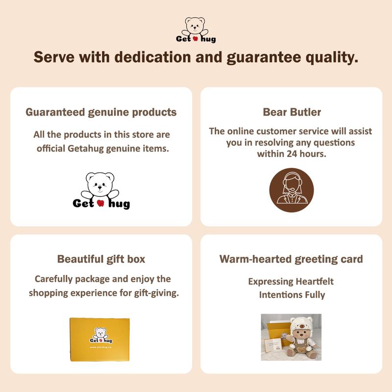 1×Getahug Bear (With outfit as shown in the photos) 1×Greeting Card 1×Gift Box