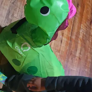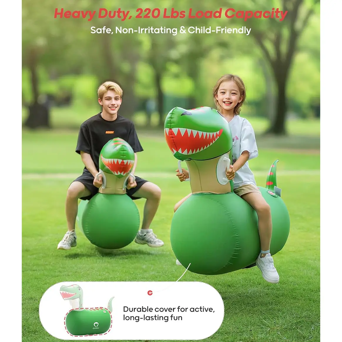 Separates the dinosaur's head and body for a more secure jumping experience. The manual inflatable pump with double air plug design facilitates easy inflation and prevents air leakage.