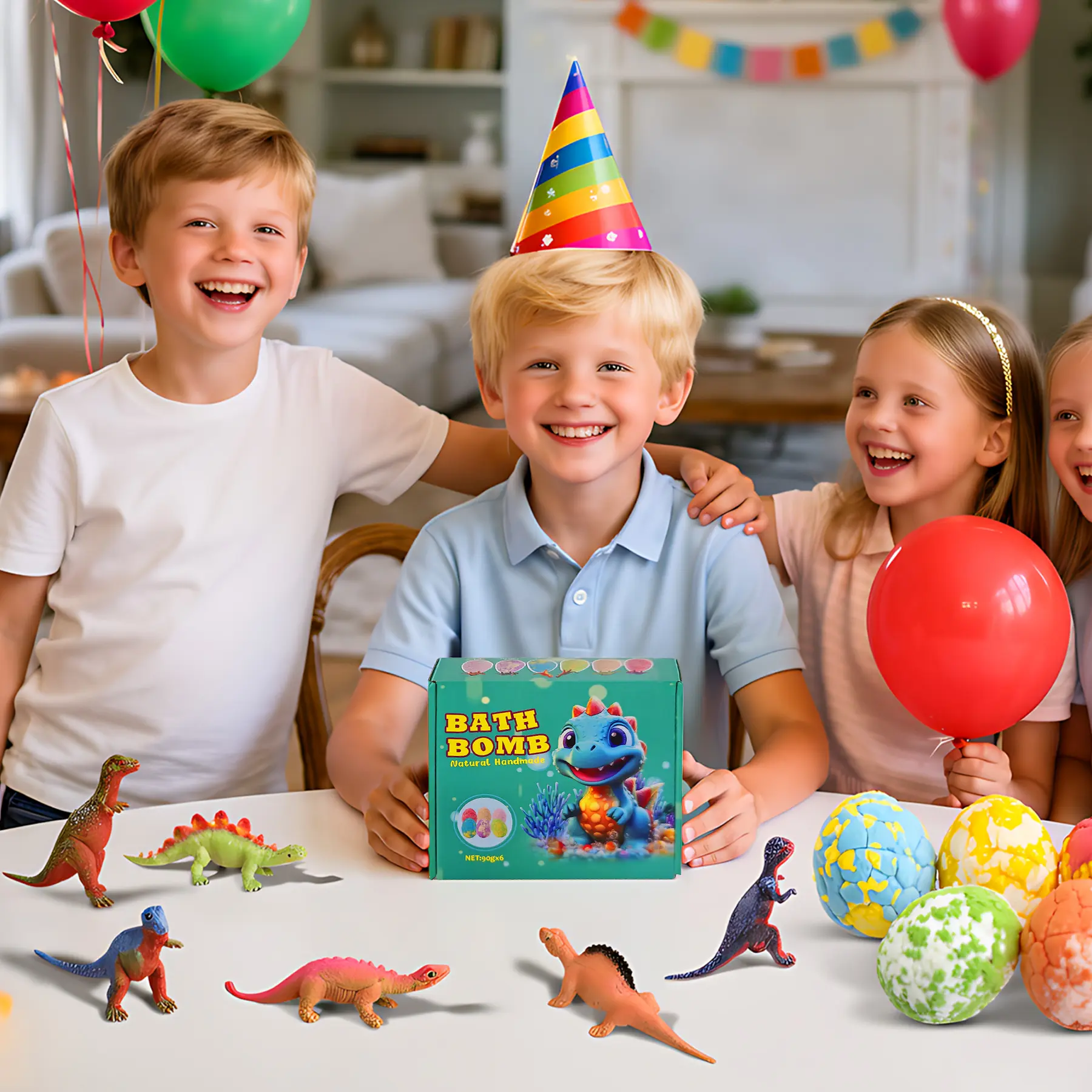 Dinosaur Egg Toy Bath Salt Balls Set, 6-Piece Natural Handmade Multicolor Bath Bombs with Surprise Toys, Gentle Soothing Bubble Bath Fun