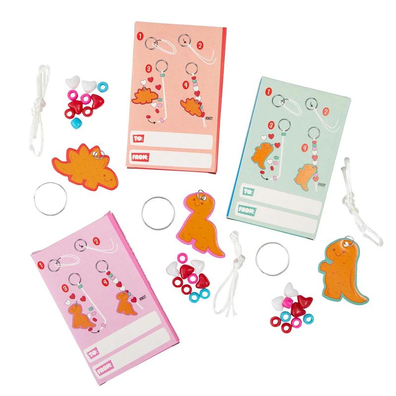 A craft activity and Valentine exchange in one, these keychains will be a sure win with kids! These exchanges feature three different dinosaur shapes including Brontosaurus, Stegosaurus, and T-Rex. On the outside of the small box, kids will find the craft kit instructions and a to/from space and inside the box is a craft kit to make a keychain. Kids will be excited to give these to fellow classmates at their classroom Valentine’s Day party. All craft kit pieces are pre-packaged for individual use. Kits include instructions.