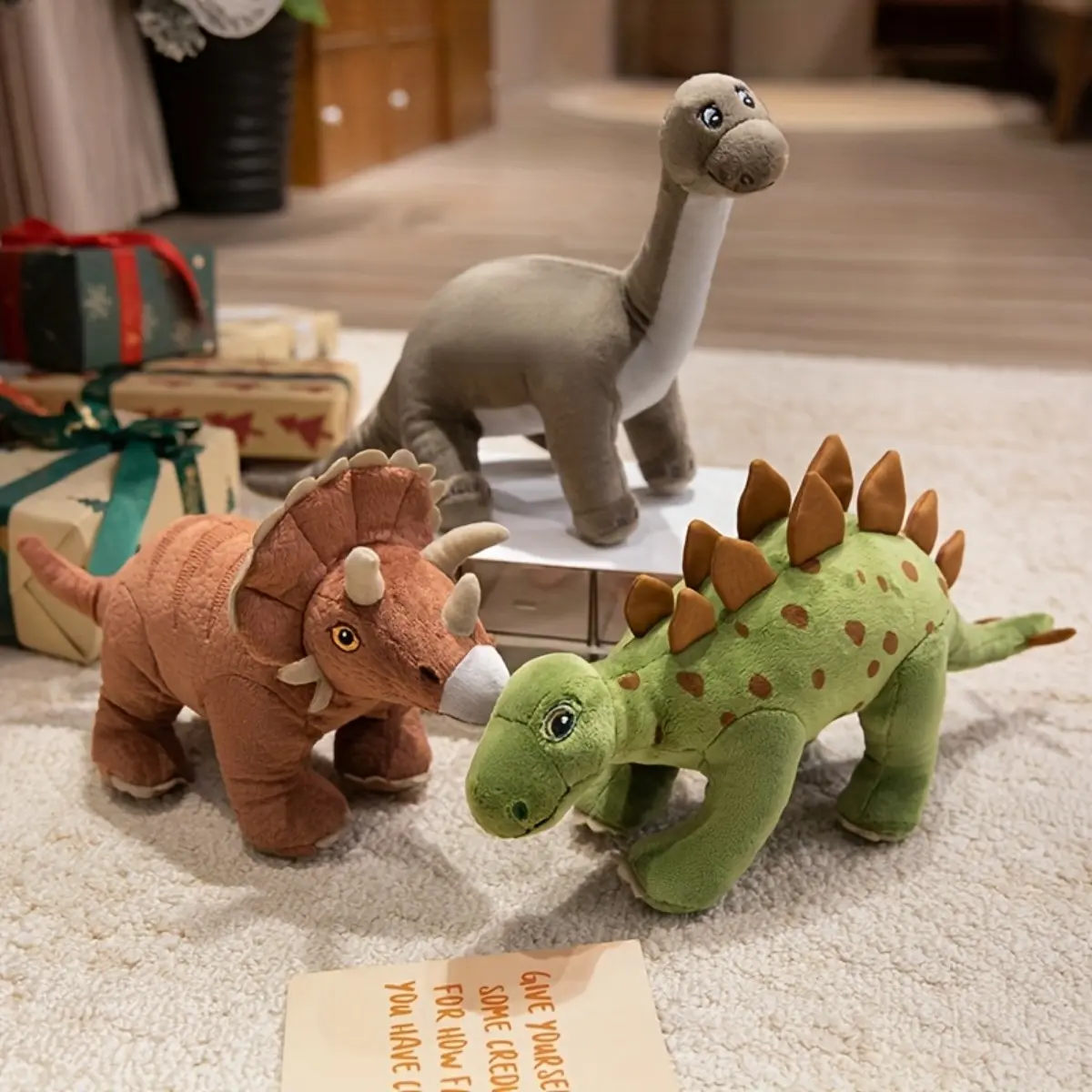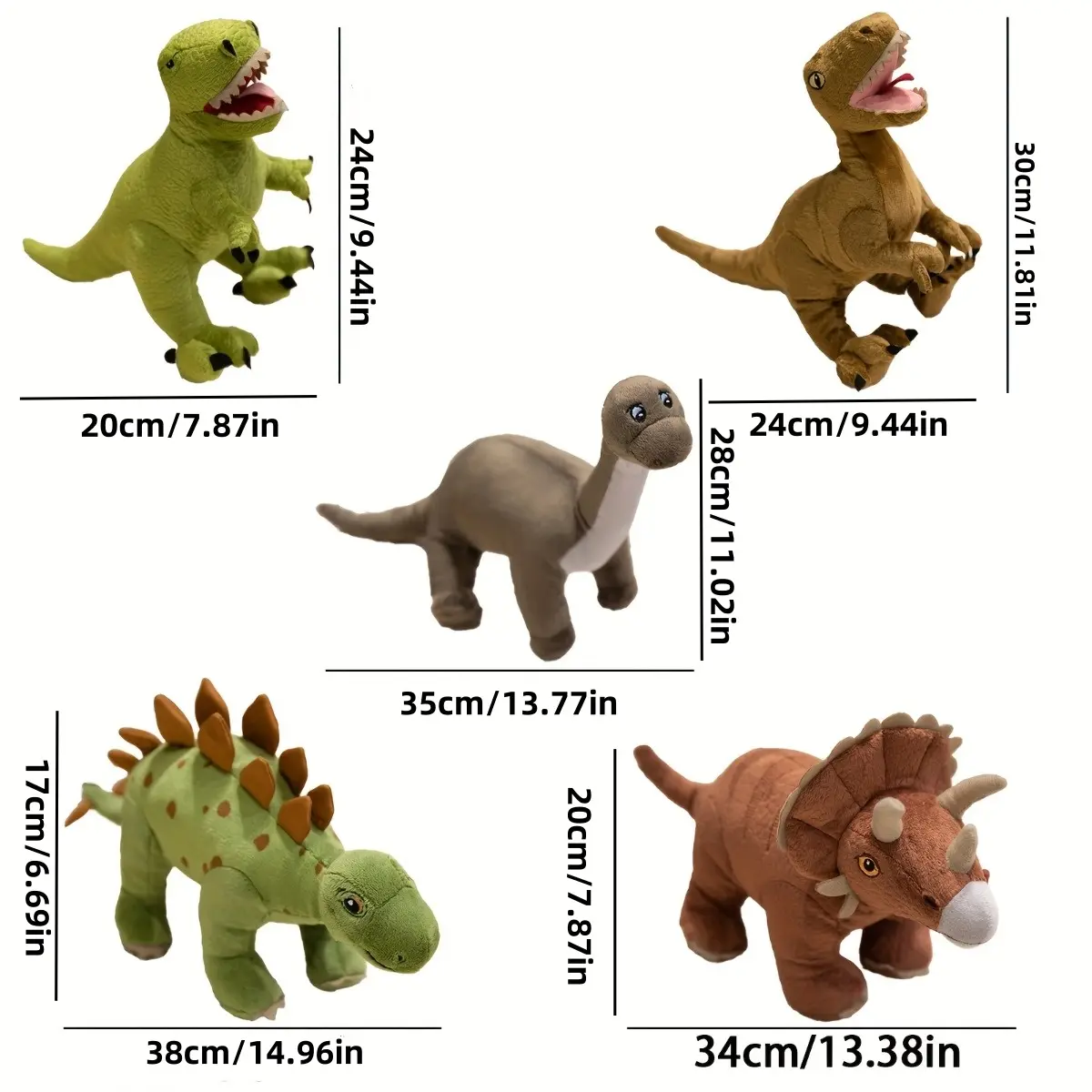 【Realistic Features】: Detailed plush textures and authentic colors make these dinosaurs visually appealing and engaging for children.