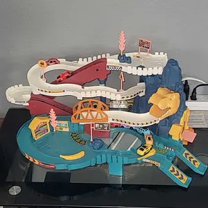 Ā·Engaging Play: Watch as young imaginations come to life, with young cars racing down the ramp track and conquering the thrilling dinosaur-themed hills.