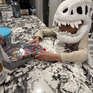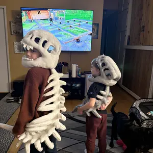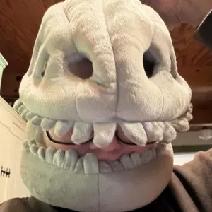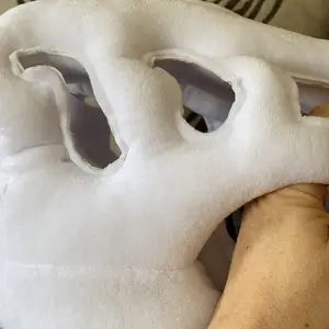 Quality of work: I ordered the small one and large one for our friends’ kids. The large one arrived with a a tear inside the skull portion and the fluff was coming out.