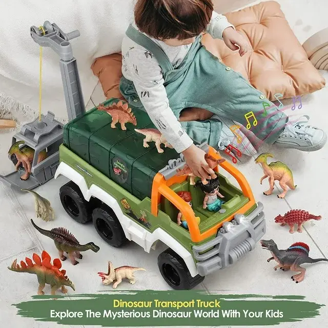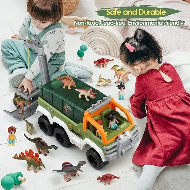 Dinosaur Truck Carrier,We Only Want What’s Best for your Child Provide your child with hours of imaginative play and endless happiness Help promote hand-eye coordination, motor skills and imaginative thinking Dinosaur Toy Trucks Give you Wonderful Experience ! Best Gifts for Dinosaur Lover Experts say the best toys are those that encourage interaction. Our toys are designed to inspire engagement and connection with your child. And it will also help kids learn to share with others. With high quality soft plastic. The outline of each dinosaur toys car is designed to be very smooth, 100% friendly and safe for kids. We believe that play is an integral and necessary part of a child's development and education. Give your child a gift that creates endless happy moments!
