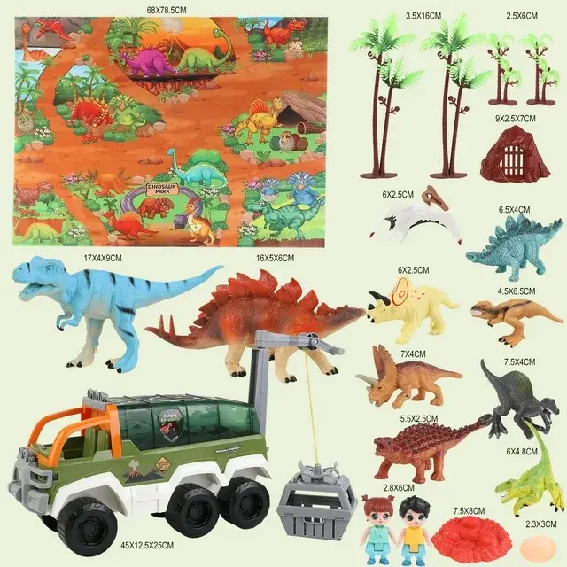 ·Funny Dinosaur Truck Playset: 18 in 1 Dinosaur carrier car toys set,including 4 big dinosaurs,4 little dinosaurs,2 dolls(Random Color) and 1 big carrier truck.The dinosaur playset will bring lots of joy and surprise to the children, help them image a real dinosaur world.