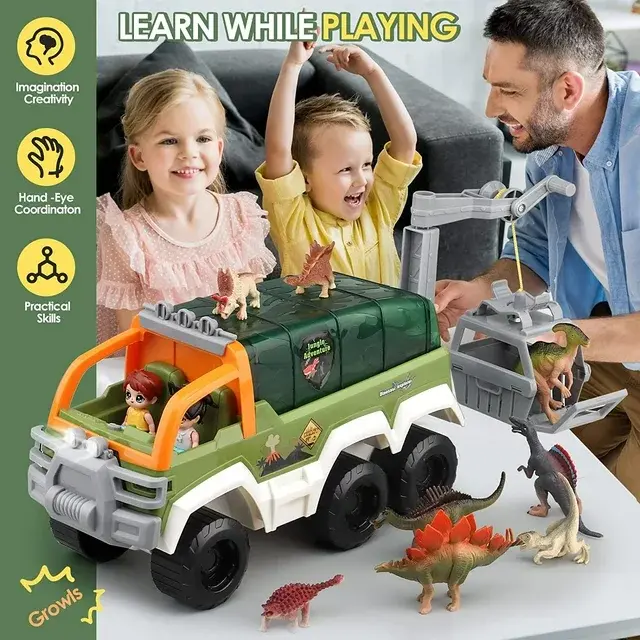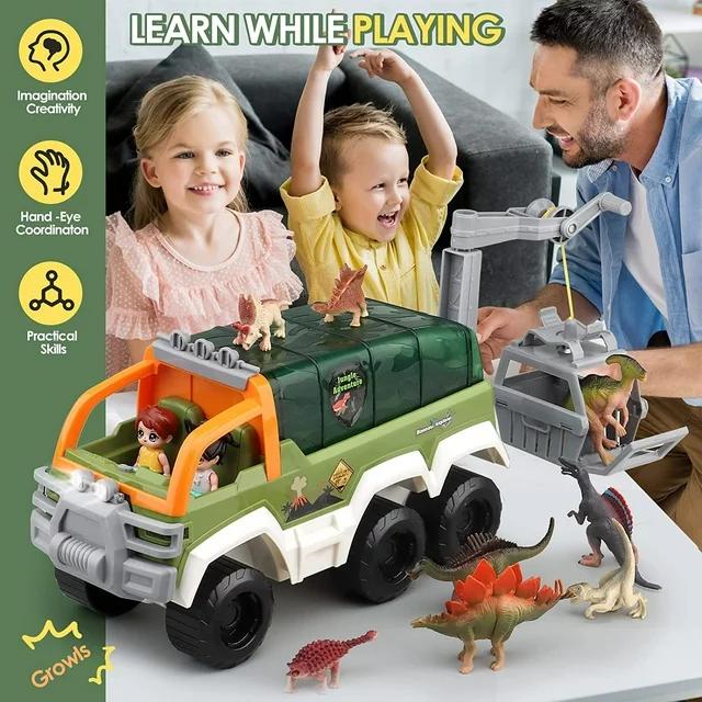 ·Learn While Playing: This great toy truck playset will attract children's attention to freeing their creativity and imagination, help children to interact with their surroundings, identify different dinosaur species. It can develops their early learning skills, thinking and imagination ability, language skills, color recognition skills, hand-eye coordination, and so much more.