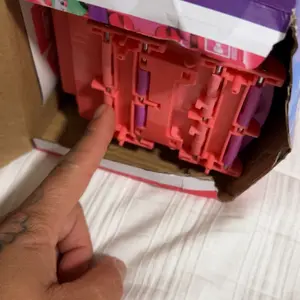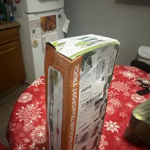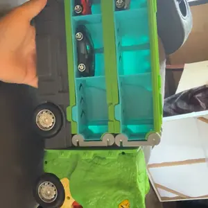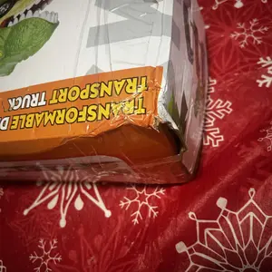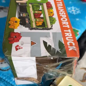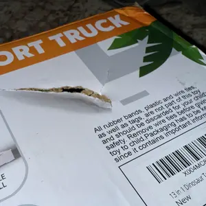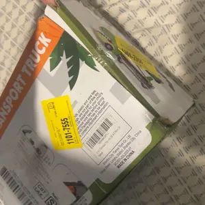 This may not be the seller’s fault, but the end of the box was ripped off and parts were missing. I took a picture of the only parts that were in the box. Packing tape placed over shipping label, so parts were most likely lost in transit. Truck and cars were very cute. So disappointed in USPS.