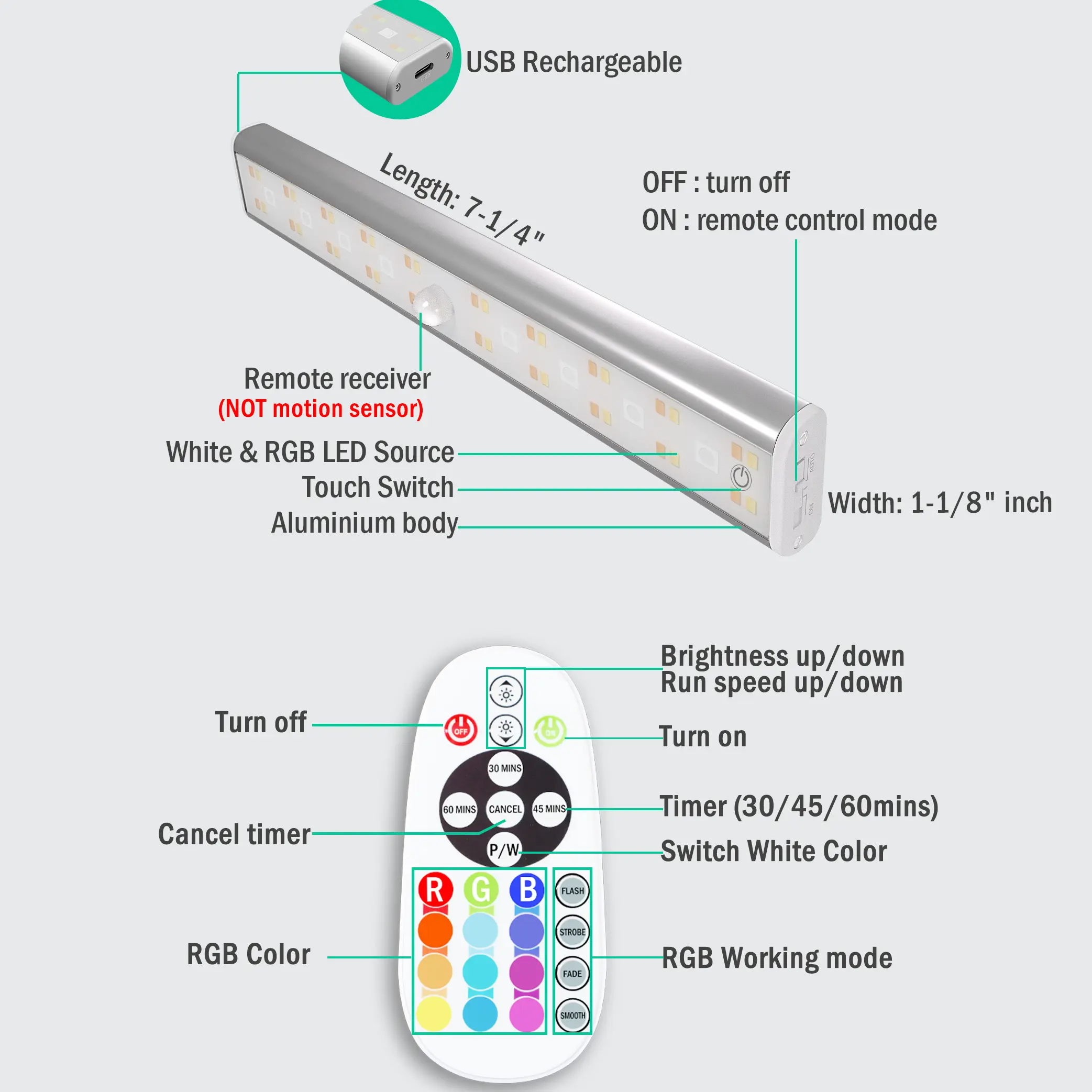 ·Convenient Lighting Control: Illuminate your space effortlessly with under-cabinet LED lights. Featuring both remote and touch control, these lights offer ultimate convenience without relying on motion sensors.