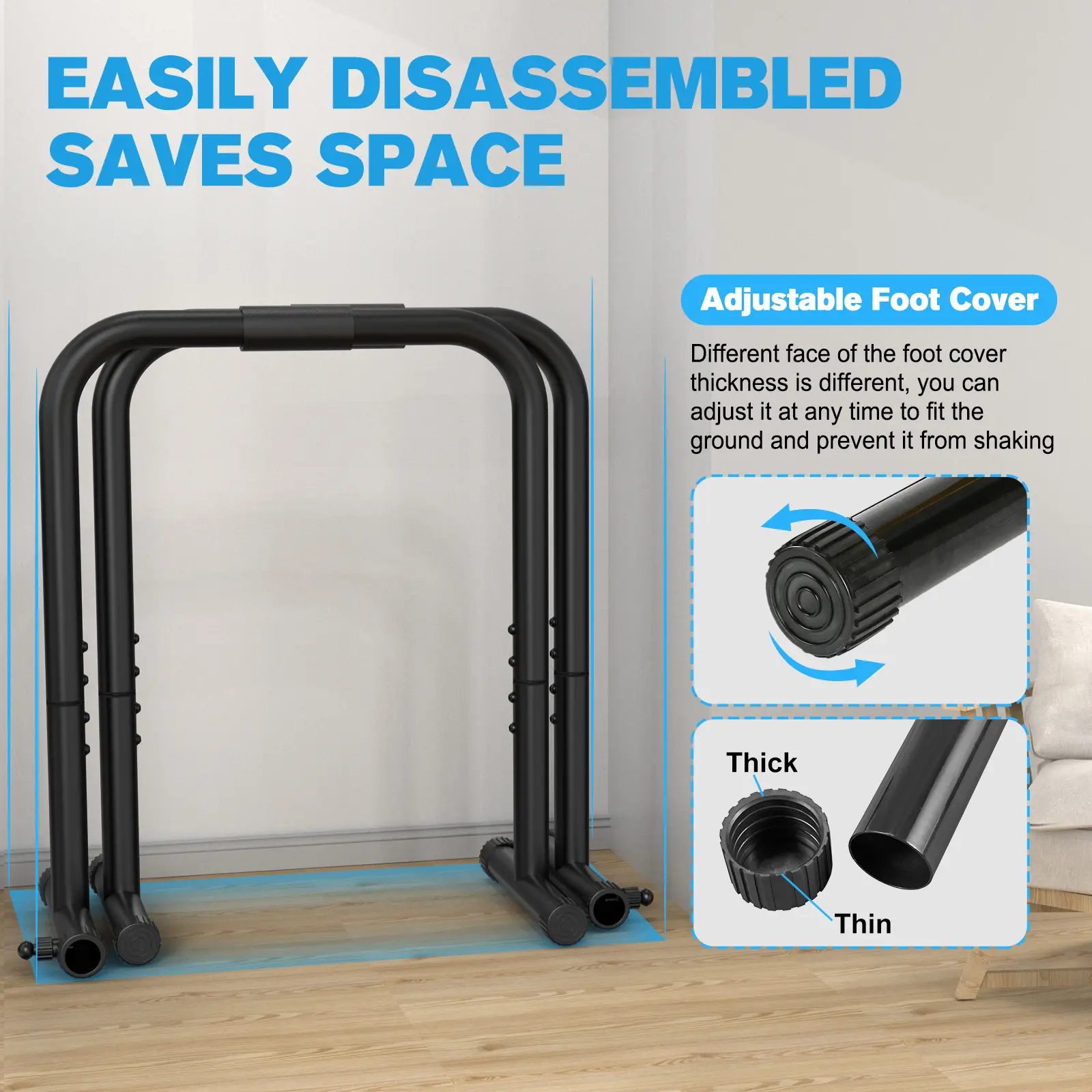 【Powerful & Solid】Dip stands made of heavy duty steel and supports to 400LBS, durable steel construction provides safety assurance during exercise.