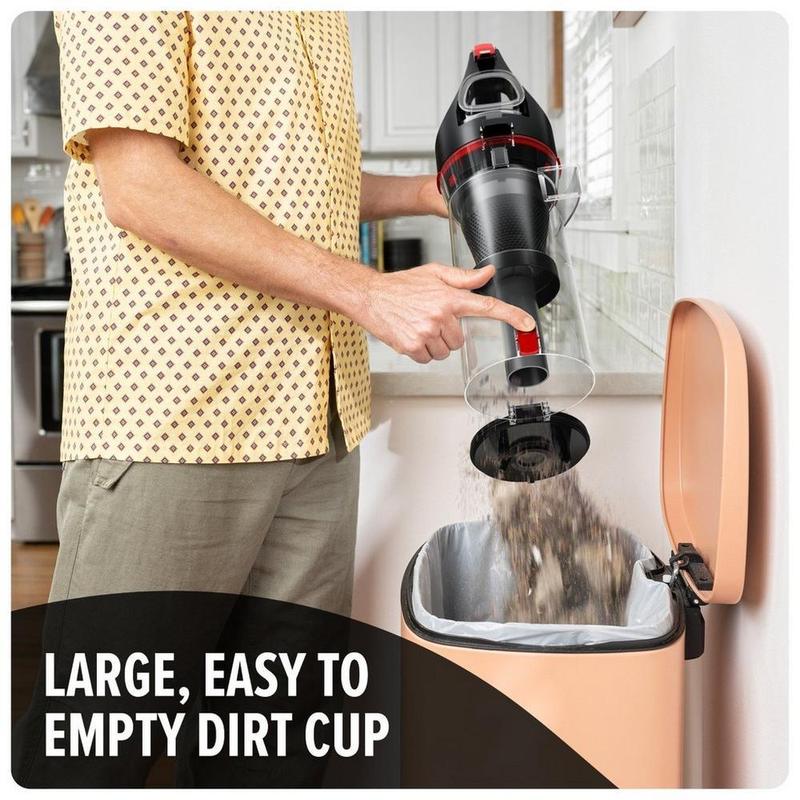 ·LARGE, EASY EMPTY DIRT CUP:Easily empty dirt and debris from the dirt cup with one touch of a button