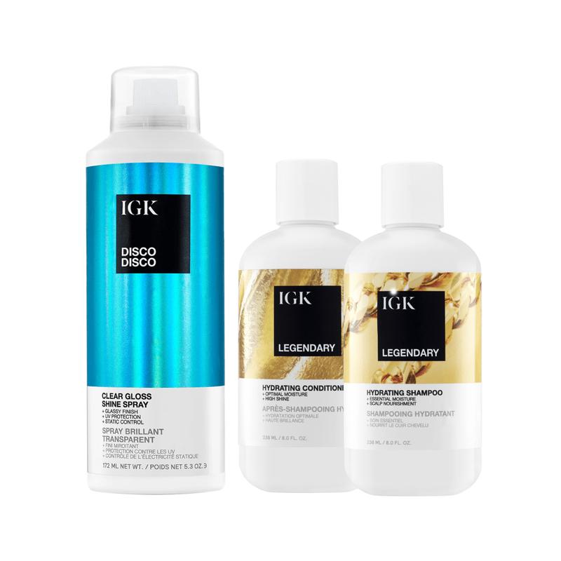 IGK DISCO DREAMS BUNDLE | Disco Disco Shine Spray + Legendary Shampoo + Legendary Conditioner | 644ml | 21.3 oz