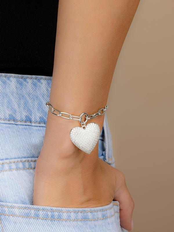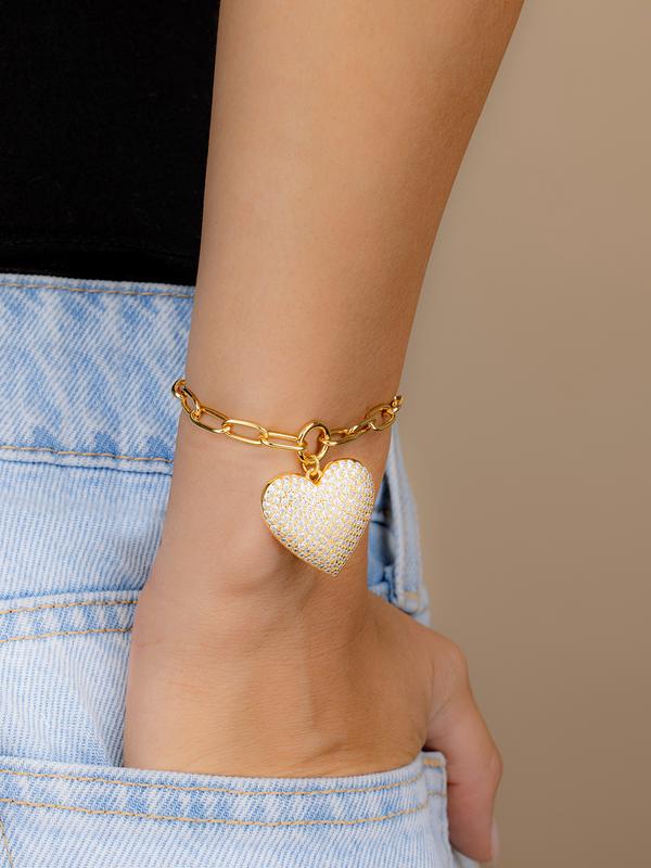 5. Disco Heart CZ Statement Bracelet with Heart Pendant and Gold Chain