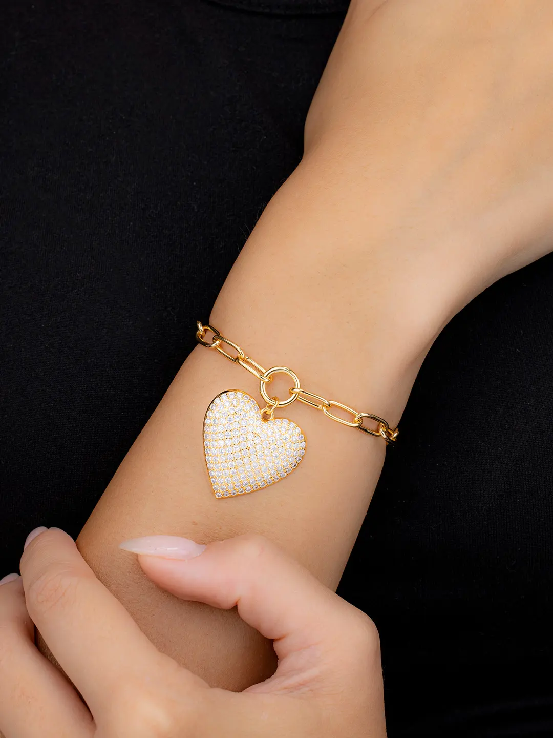 This bracelet is better than I thought. I love it so much and it brings a sparkle to any outfit, elevating it. Love the heart with cz and love that paper clip chain it is on!! Definitely a good buy!