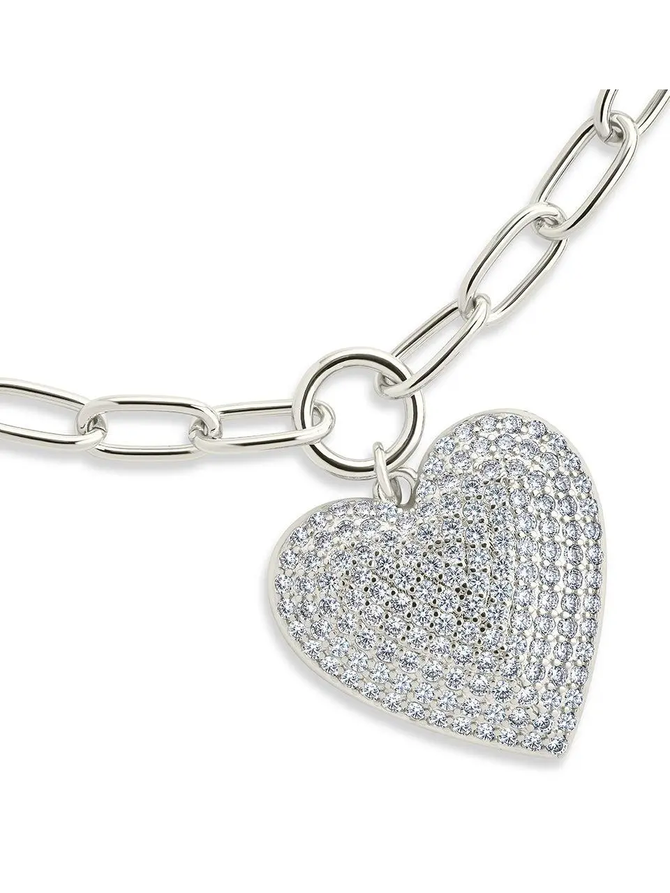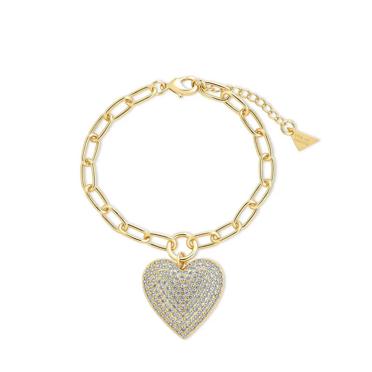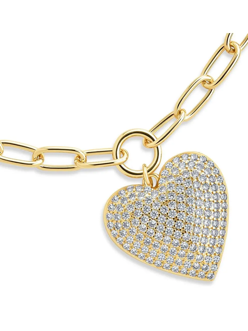 Disco Heart CZ Statement Bracelet with Heart Pendant and Gold Chain