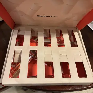 This set is amazing! First off it comes with larger than normal size samples and it’s like being able to carry your favorite around and change them daily while your purse doesn’t feel a thing. So far I have smelled floral marshmallow, ambers vanilla and fruity almond. All smell amazing.
