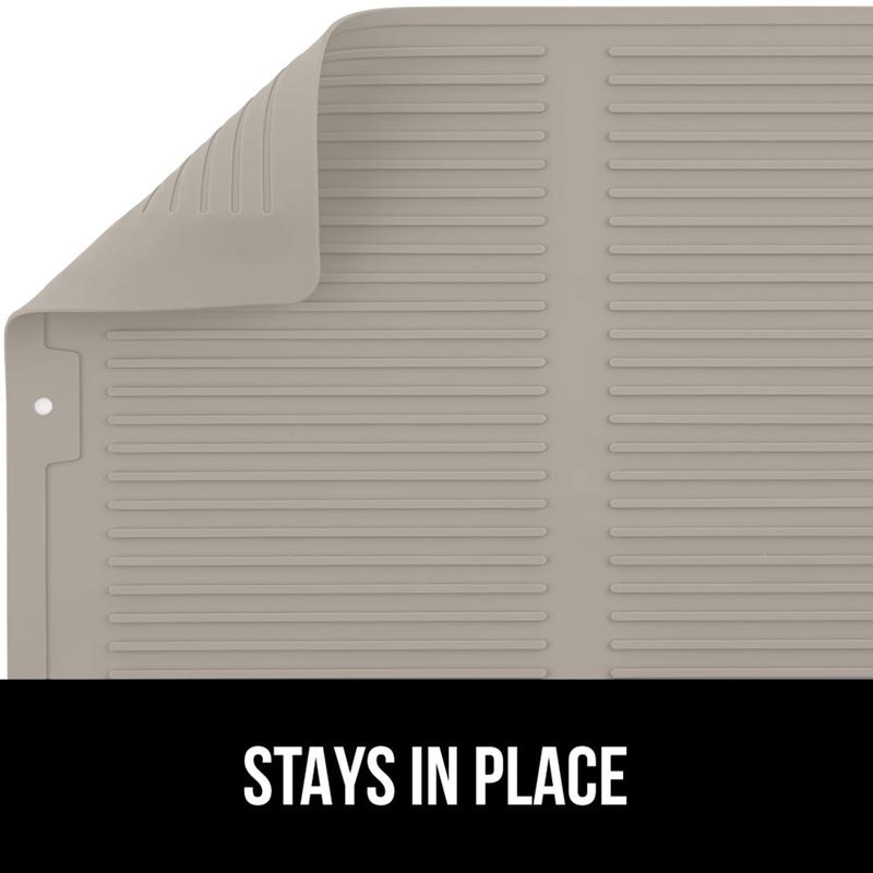 DURABLE WATERPROOF AND BPA FREE SILICONE: Constructed from food grade, BPA free silicone, mat is 100 percent waterproof to help facilitate a faster drying experience; food safe for all of your utensils; unlike microfiber mats, which could take hours to dry and should be machine washed after each use, silicone dries fast and can be thrown in the dishwasher for an easy clean
