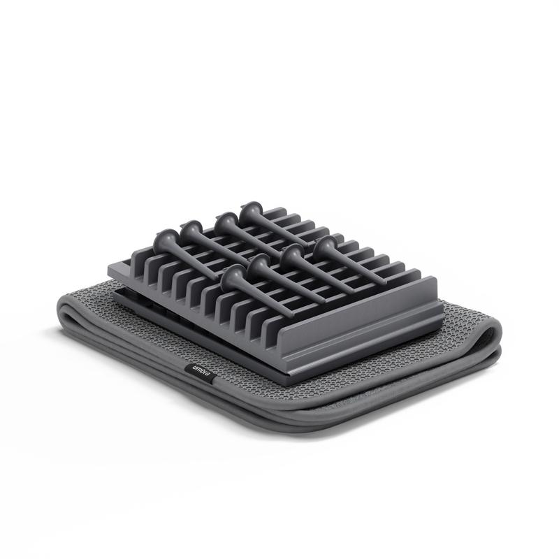 The UDry Peg Dish Rack with Mat is the perfect solution for drying dishes, glasses, and more. This innovative drying rack combines a dish rack and drying mat, featuring a customizable peg system that offers versatility for drying odd-shaped items.