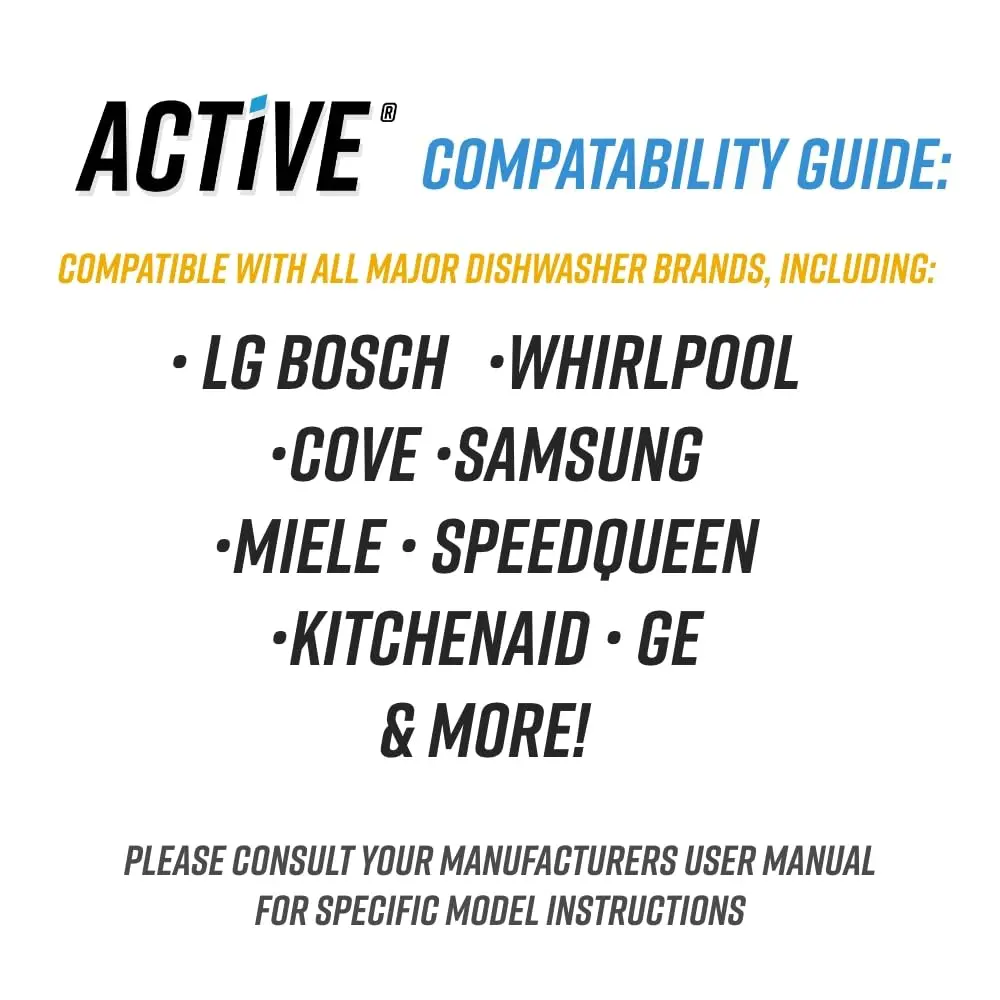 ACTIVE Dishwasher Tablets contain a blend of dishwasher cleaning agent and citric acid to tackle the dirtiest machines. Removes limescale, hard water stains, grime and more.