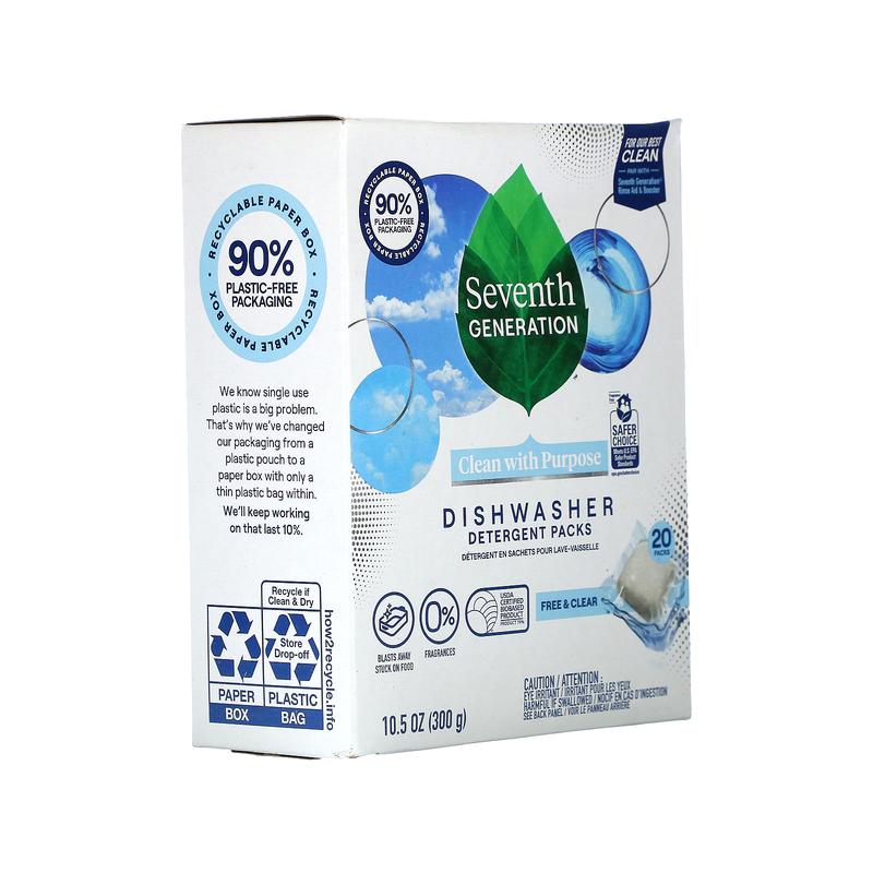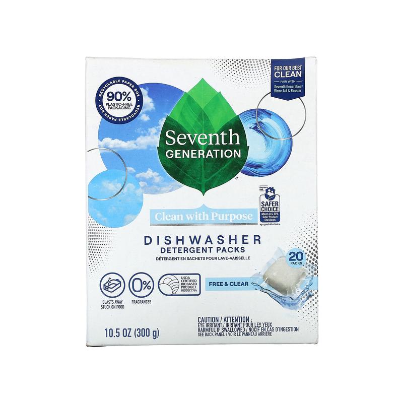 5. Seventh Generation Dishwasher Detergent Packs, Free & Clear, 20 Packs, 10.5 oz (300 g)