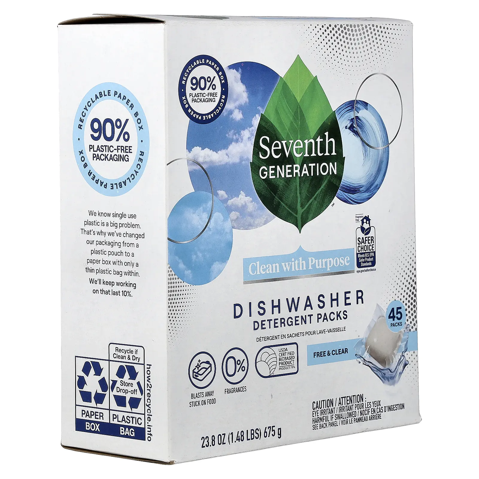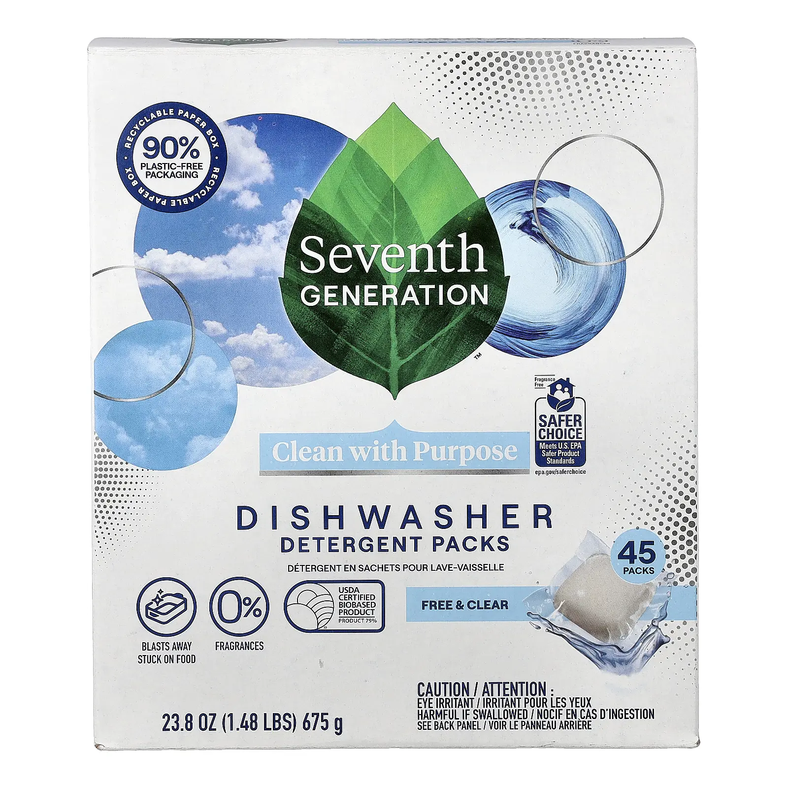 5. Seventh Generation Dishwasher Detergent Packs, Free & Clear, 45 Packs, 23.8 oz (675 g)