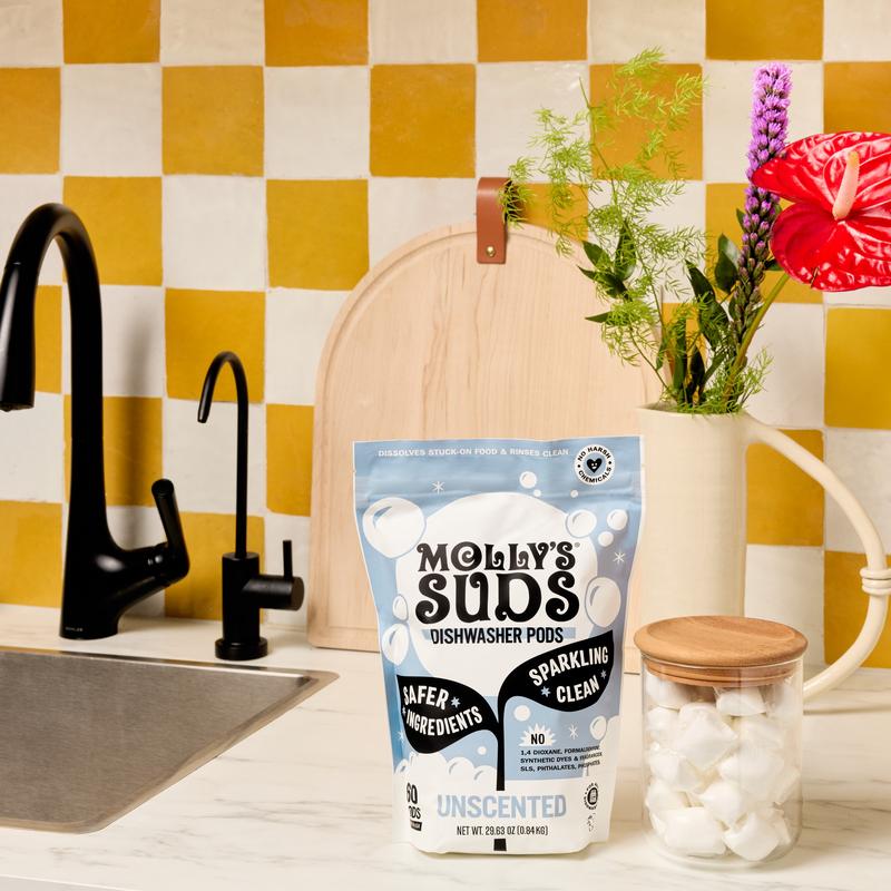 At Molly's Suds, we believe you deserve better. We care deeply about making laundry detergents & household cleaners with safer, simpler ingredients, which is why we created our very own Dishwasher Detergent Pods that are plant-powered and free from harmful chemicals found in other popular brands. And, unlike other 'natural' brands, they really work!
