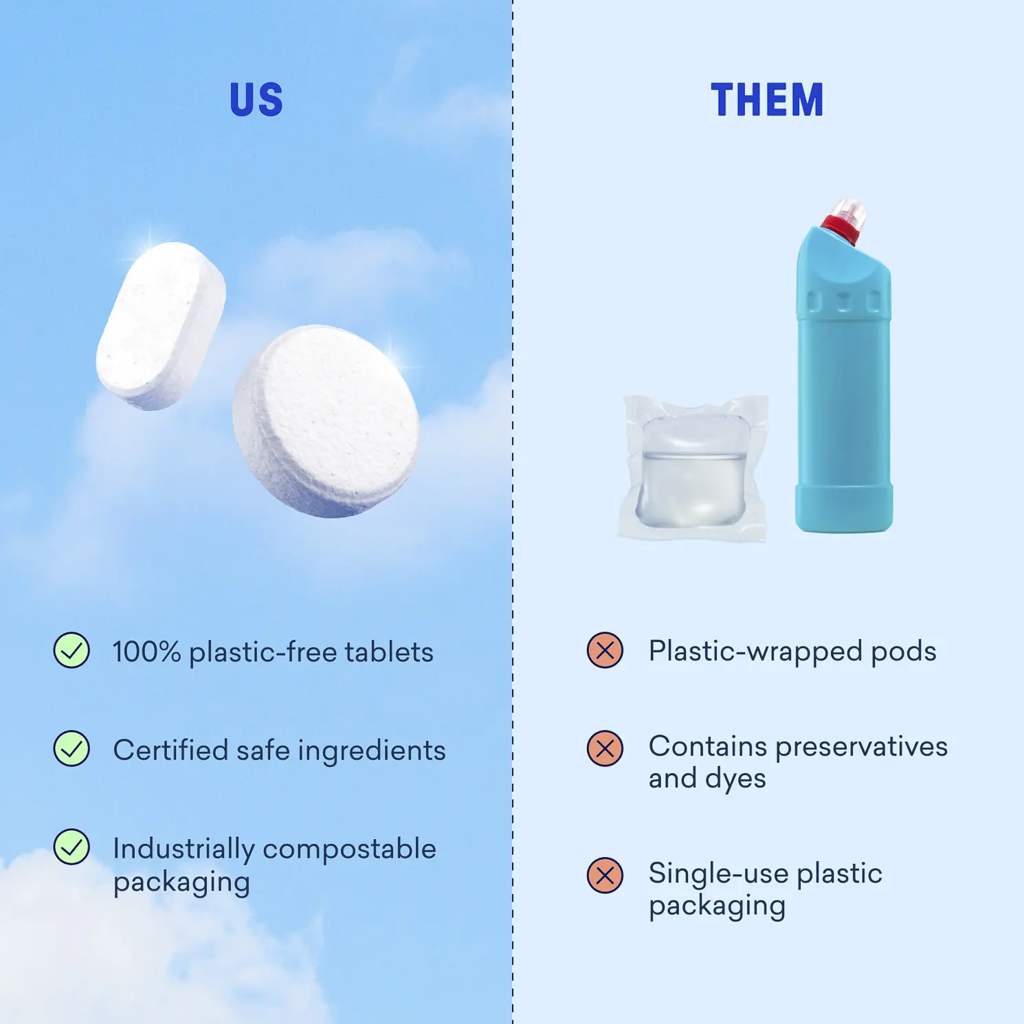 ·Plastic-free tablets and zero-waste design.