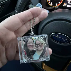 The product works, it’s a cute key chain and I cannot wait to gift it to my partner. It did come with a small crack though in the case likely from shipping.. left disappointed. I also didn’t realize there would be a logo on the back, kind killed the aesthetic.