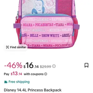 Bring princess power to every adventure with this vibrant Disney Princess backpack! Featuring Ariel, Cinderella, Tiana, and more, it has a spacious main compartment, front zip pocket, and two side mesh pockets. With room for charms, kids can customize their bag and carry magic wherever their royal journey leads!