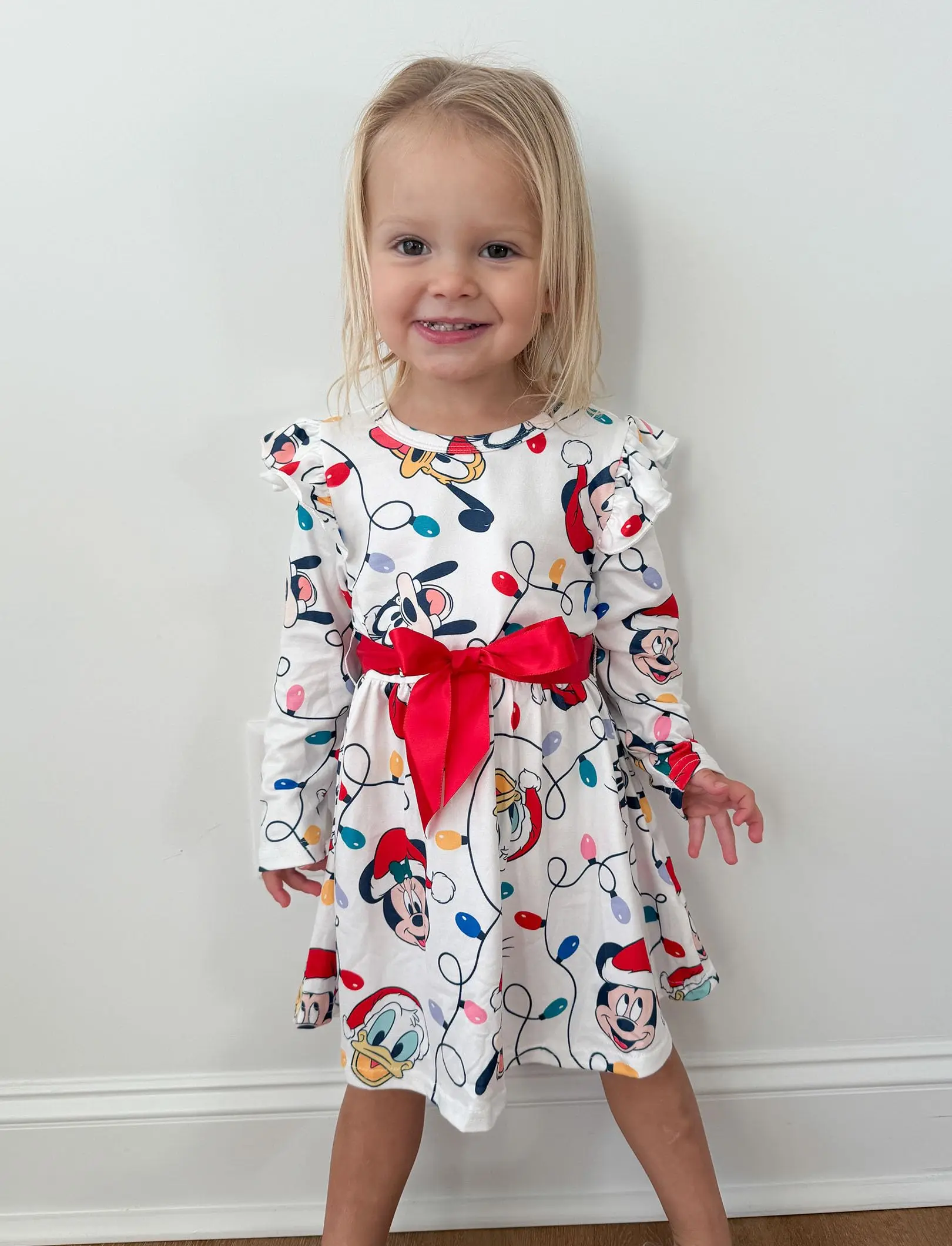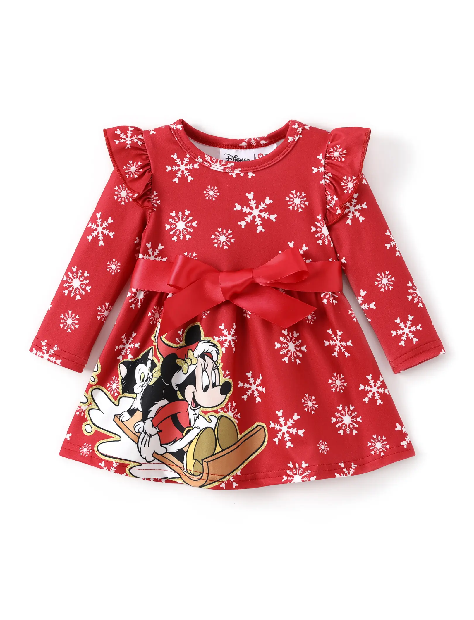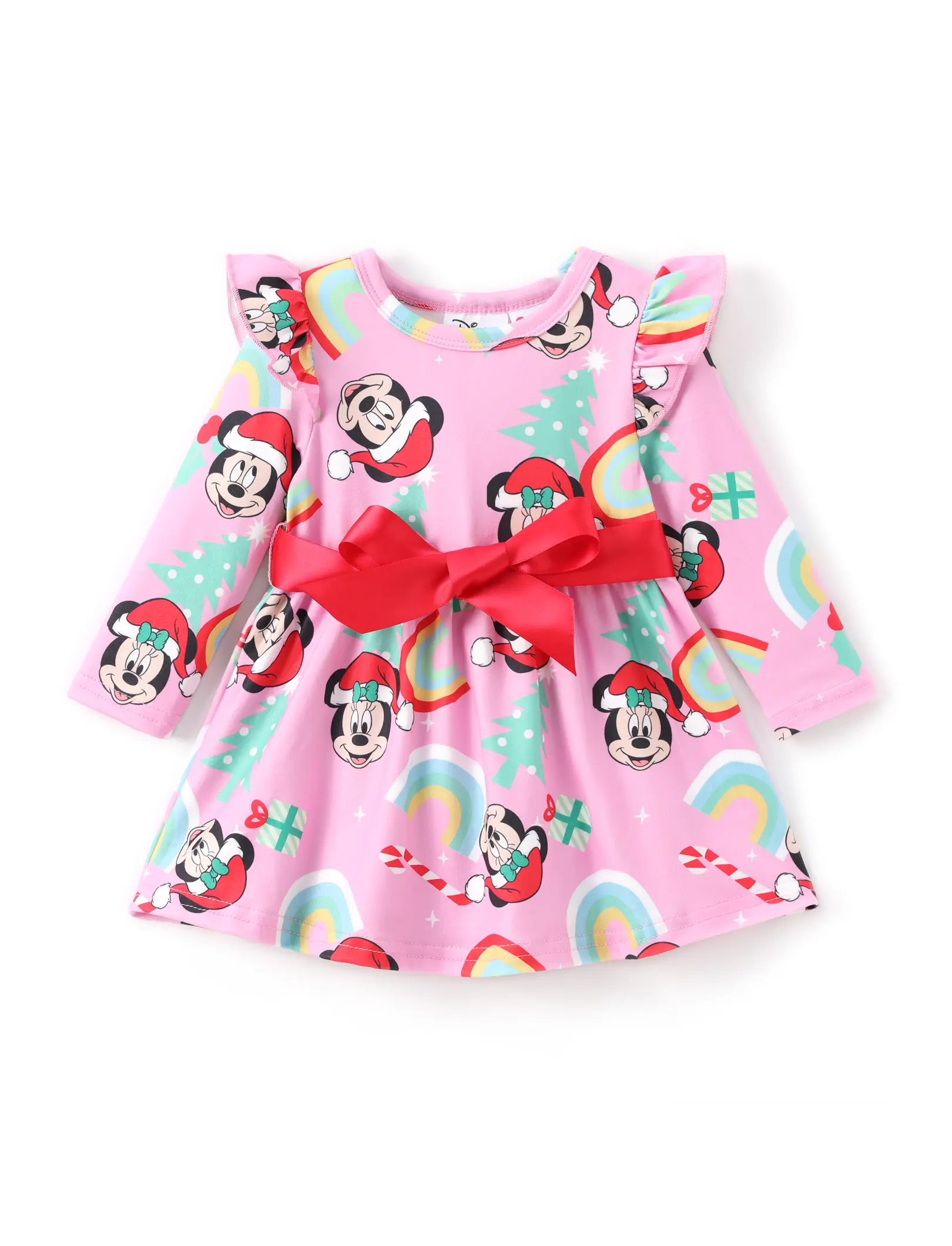 ✨ This baby girl dress features a charming Mickey & Friends print, perfect for holiday adventures. The dress includes a cute bow, making it a standout piece for photos and special occasions. Designed for baby girls, it adds a whimsical touch to any Christmas celebration.