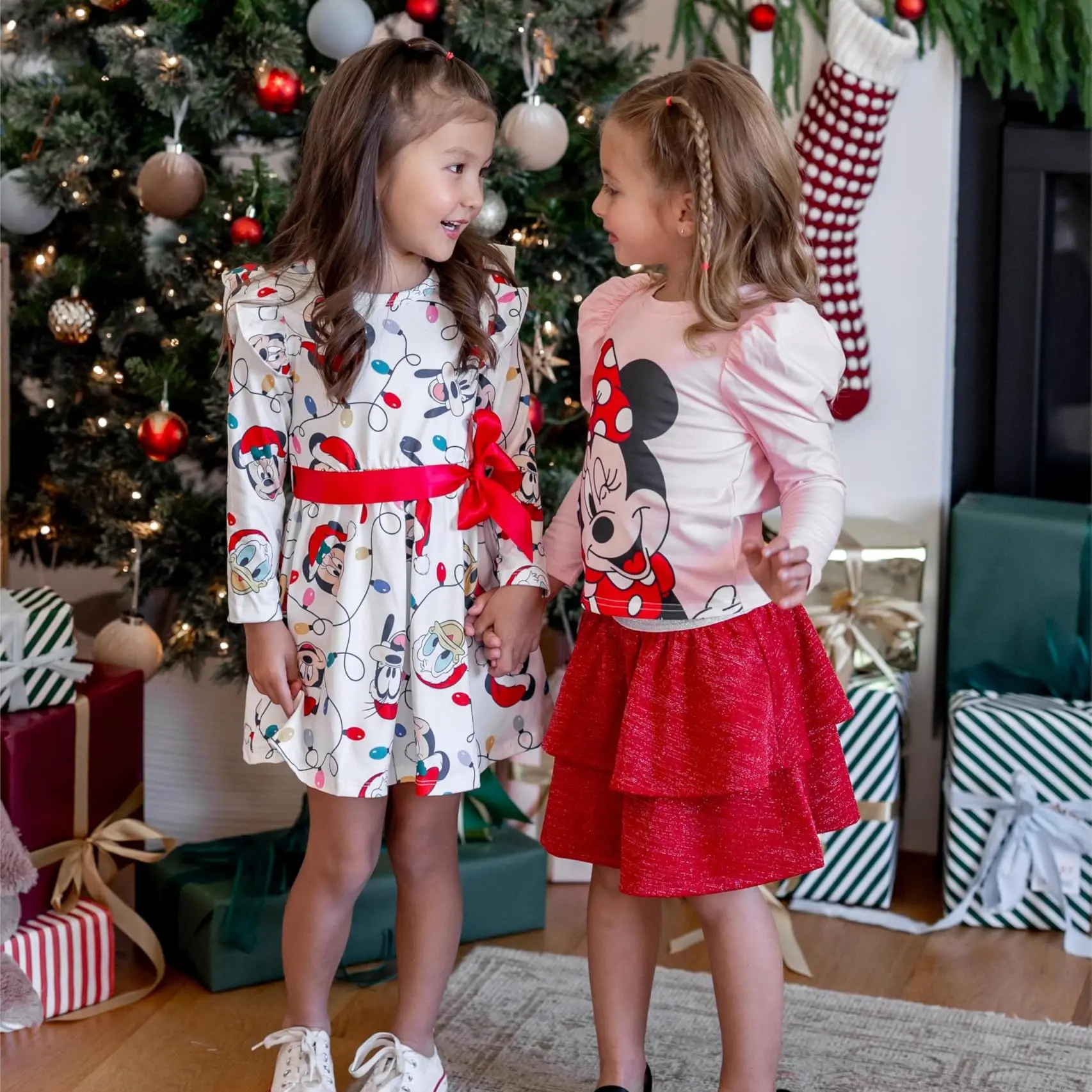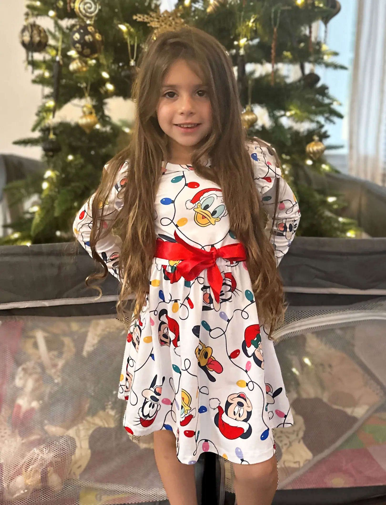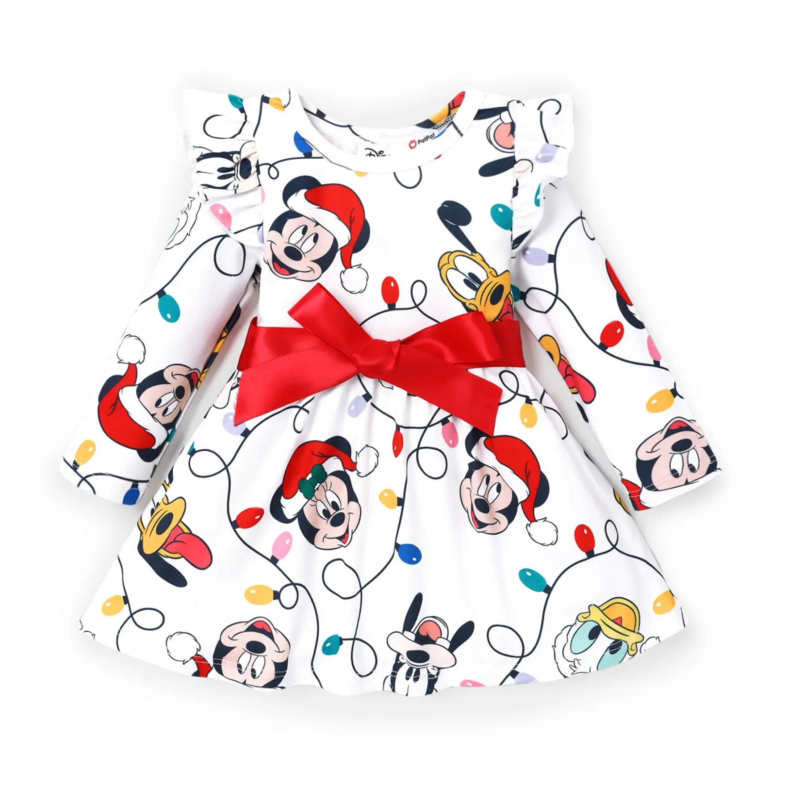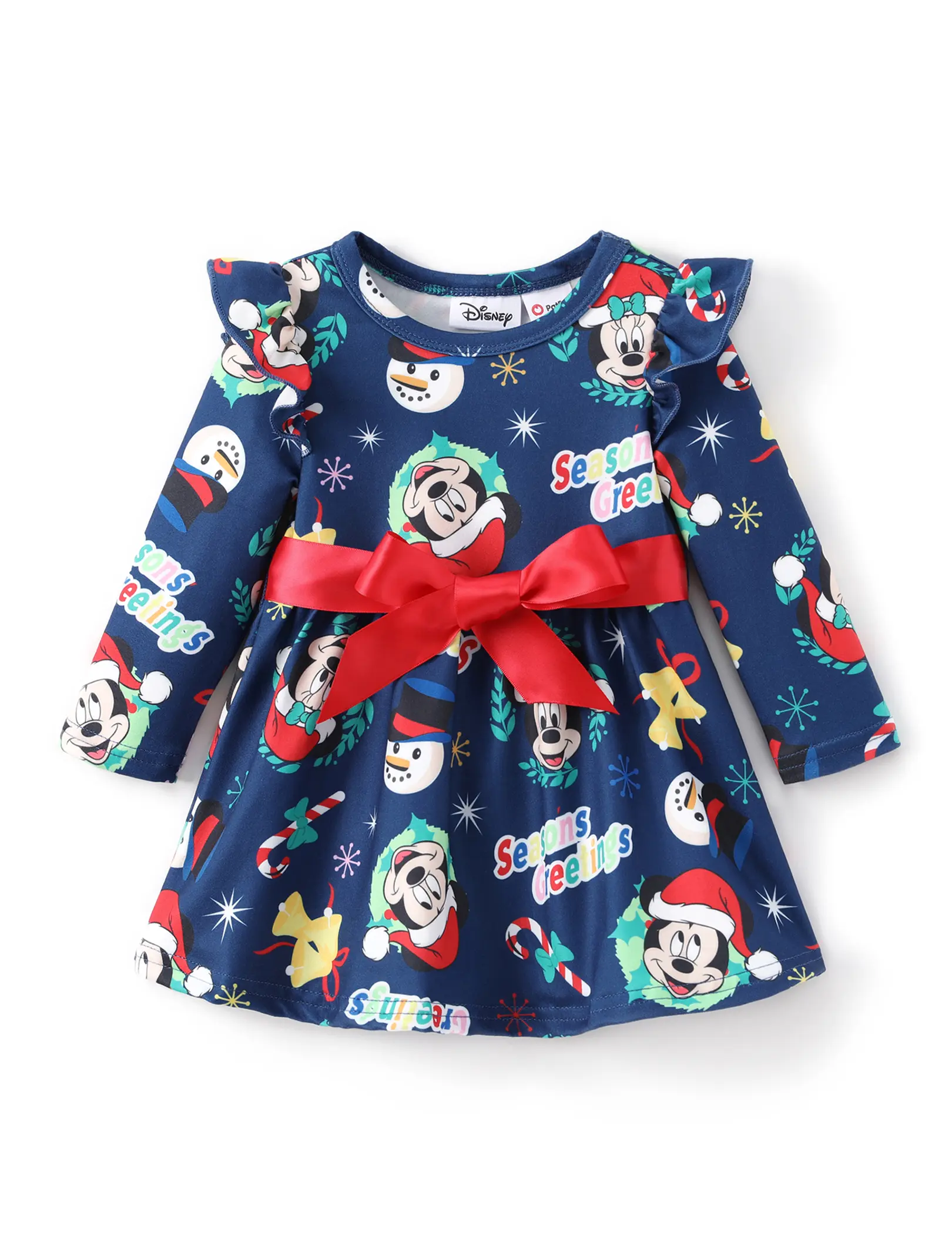 ✨ This baby girl dress features a charming Mickey & Friends print, perfect for holiday adventures. The dress includes a cute bow, making it a standout piece for photos and special occasions. Designed for baby girls, it adds a whimsical touch to any Christmas celebration.