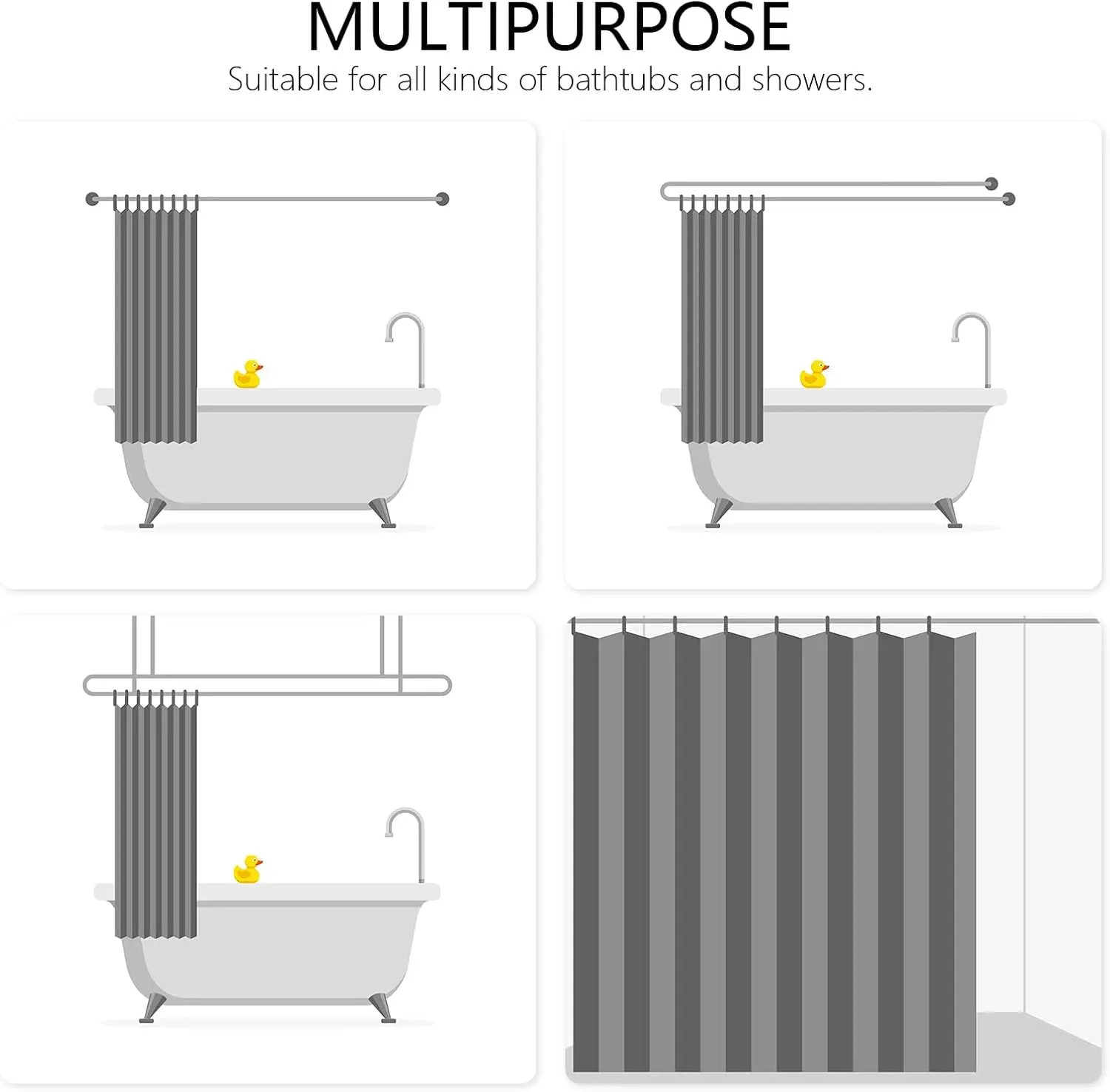 【Function】Use at your home, bathroom, apartment, hotel, camper, RV, dorm room, school shower, athletic club, gym, stalls, bathtubs and everywhere else you need a reliable shower curtain