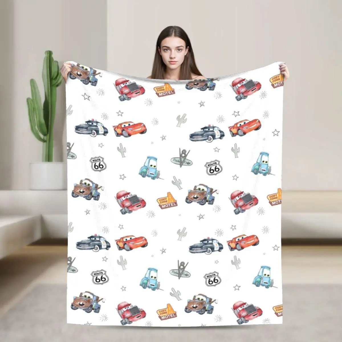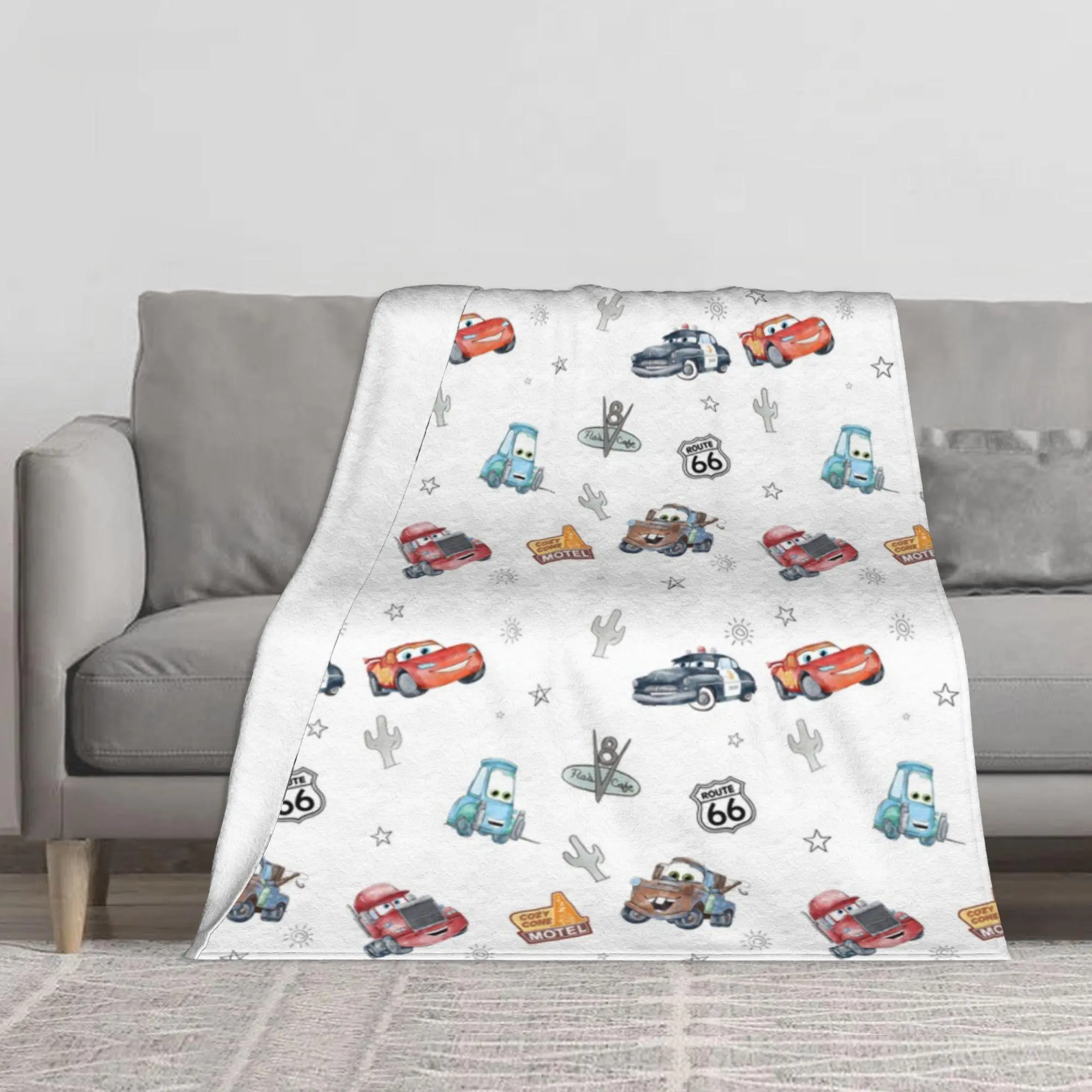 DISNEY CLASSIC Soft Funny Cars‌ Throw Blanket Route 66 Cars Blanket, Home Bedroom Decor