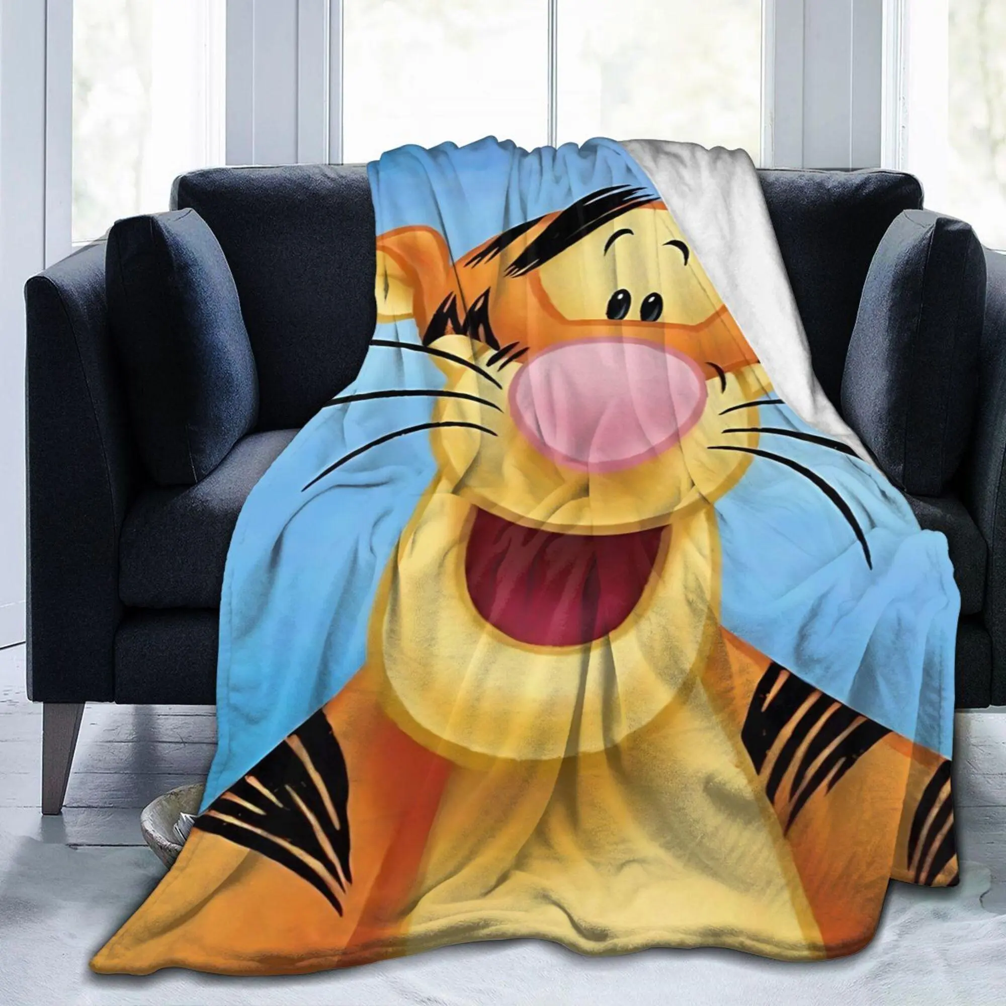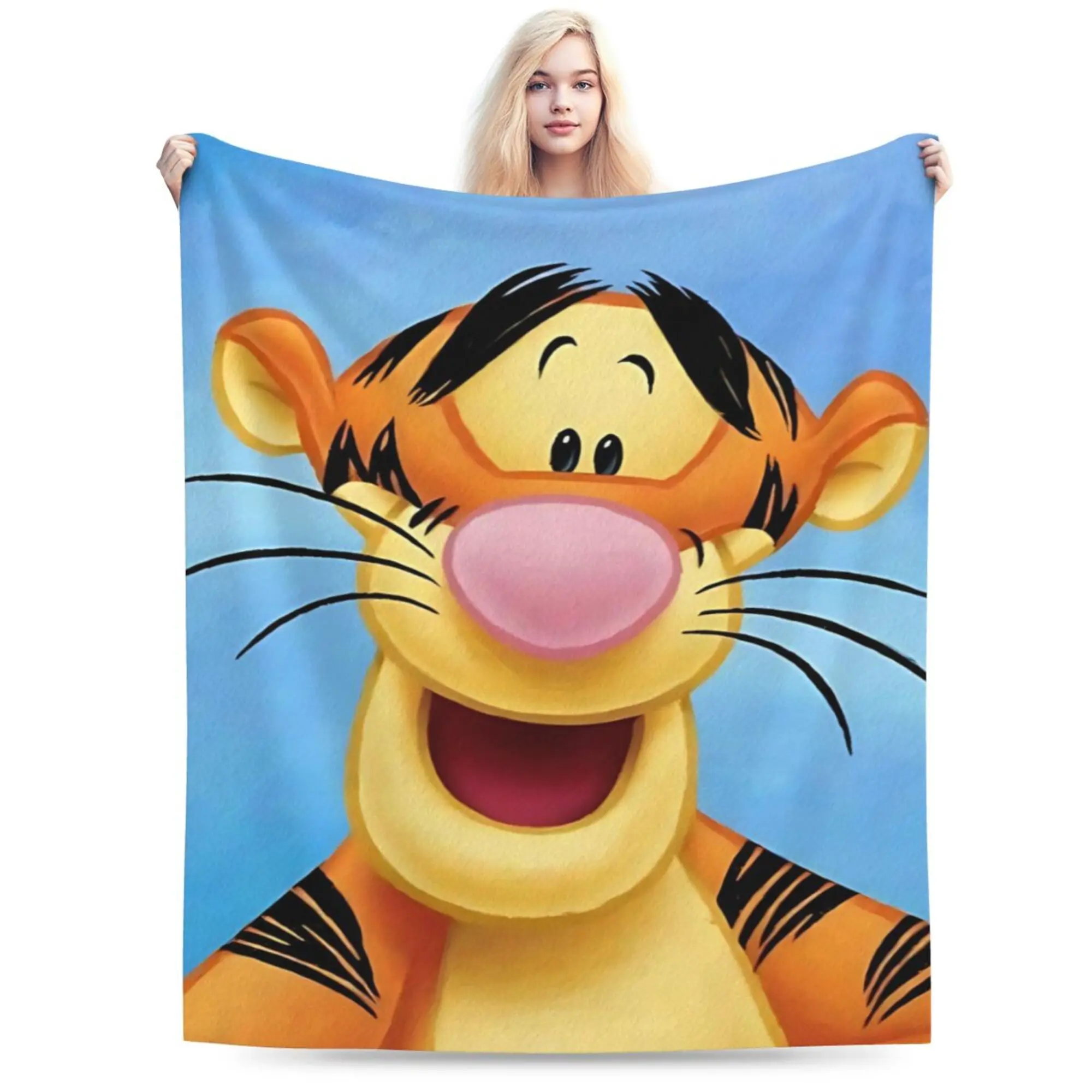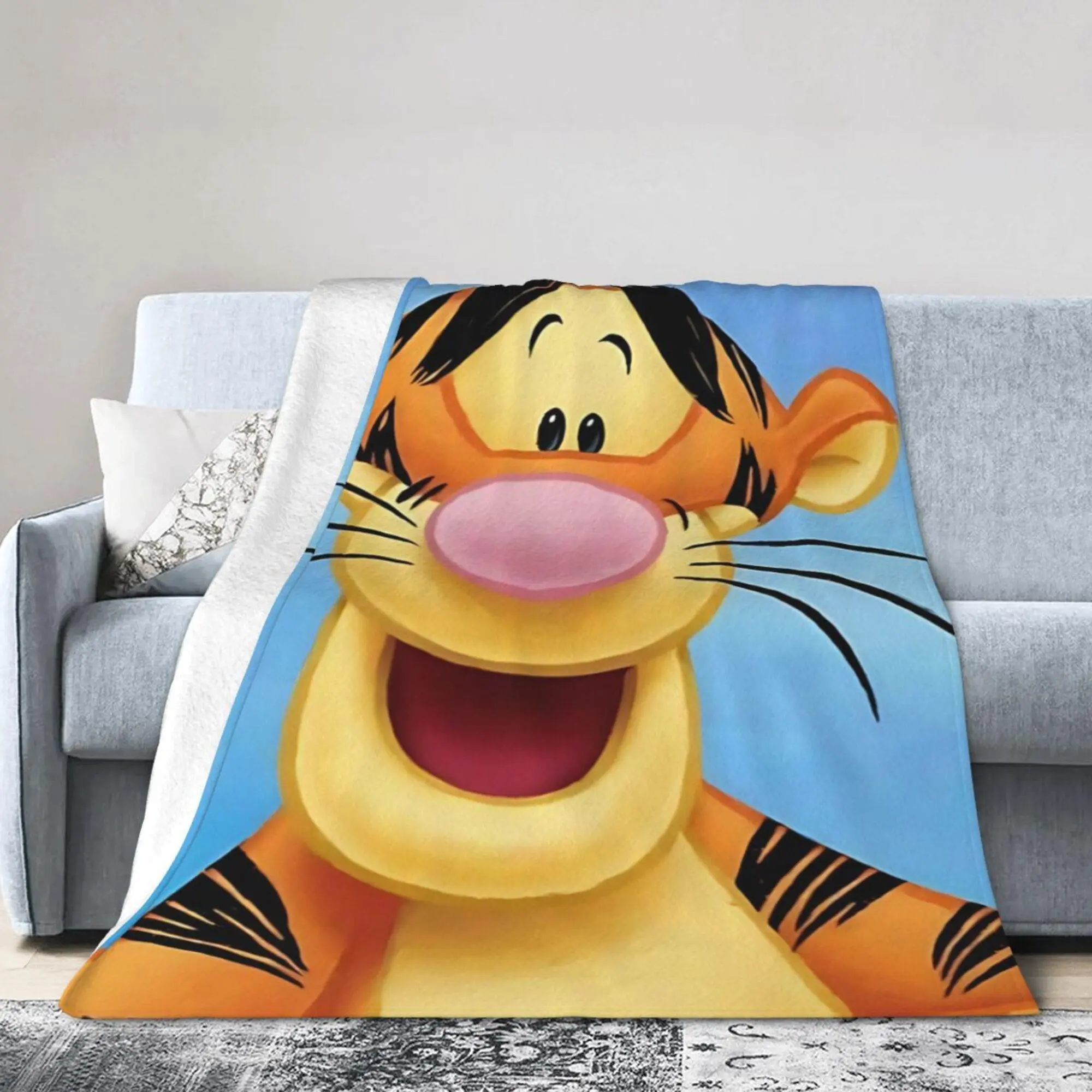 DISNEY CLASSIC Tigger Throw Blanket – Adorable Disney Tigger  Face Design, Bright Blue Sky Background, Soft Fleece Blanket for Kids, Bedroom or Gift