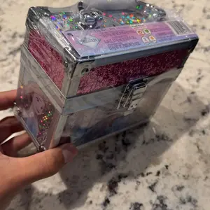 This Disney Frozen Cosmetic Makeup Train Case Set includes a Lip Gloss Tube, Lip Balm, and Lip Gloss Compact. Ideal for parties and sleepovers, this set is by Townley Girl. The set measures 4.7 inches in height and 6 inches in width. It includes a mini train case, making it easy to carry and use.