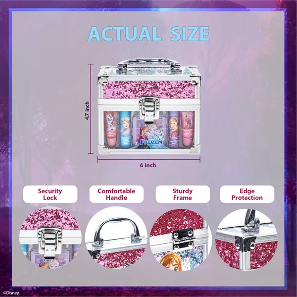 The Disney Frozen Theme adds a fun touch to your makeup collection. By Townley Girl, a trusted brand for children's cosmetics. This set is ideal for girls who love Disney Frozen and want a fun, easy-to-use makeup set.