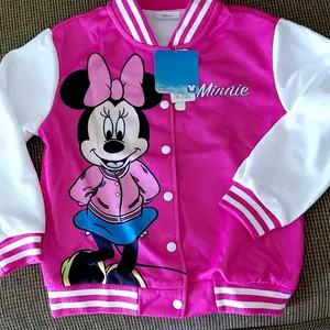 This lightweight coat is ideal for children aged 2-14 years. It features a button-up design and a color block sweatshirt style. The jacket combines elements from Disney characters like Minnie, Mickey, Stitch, Princess, Frozen Elsa, and Marvel. It's perfect for casual wear, offering a fun and playful look.