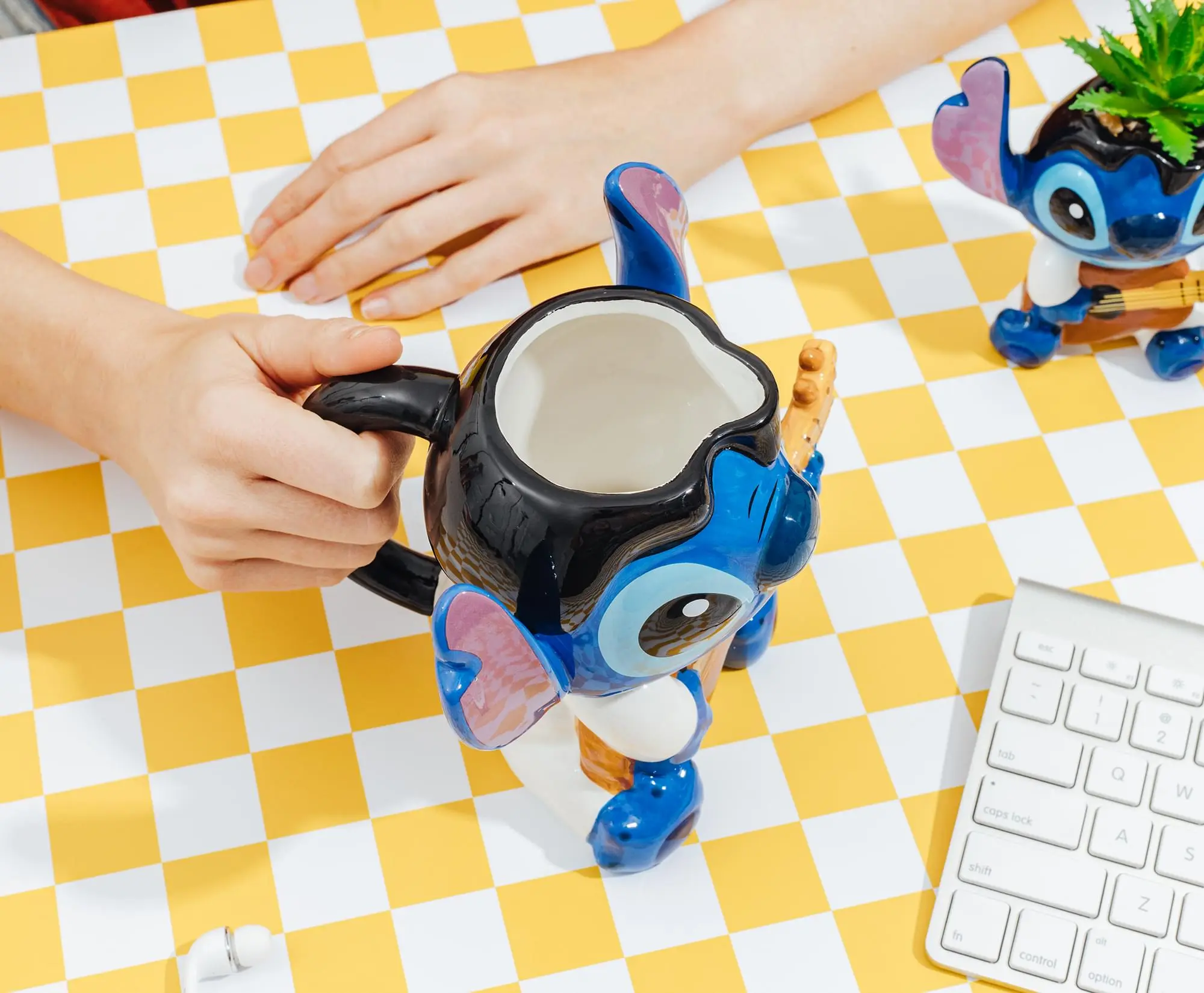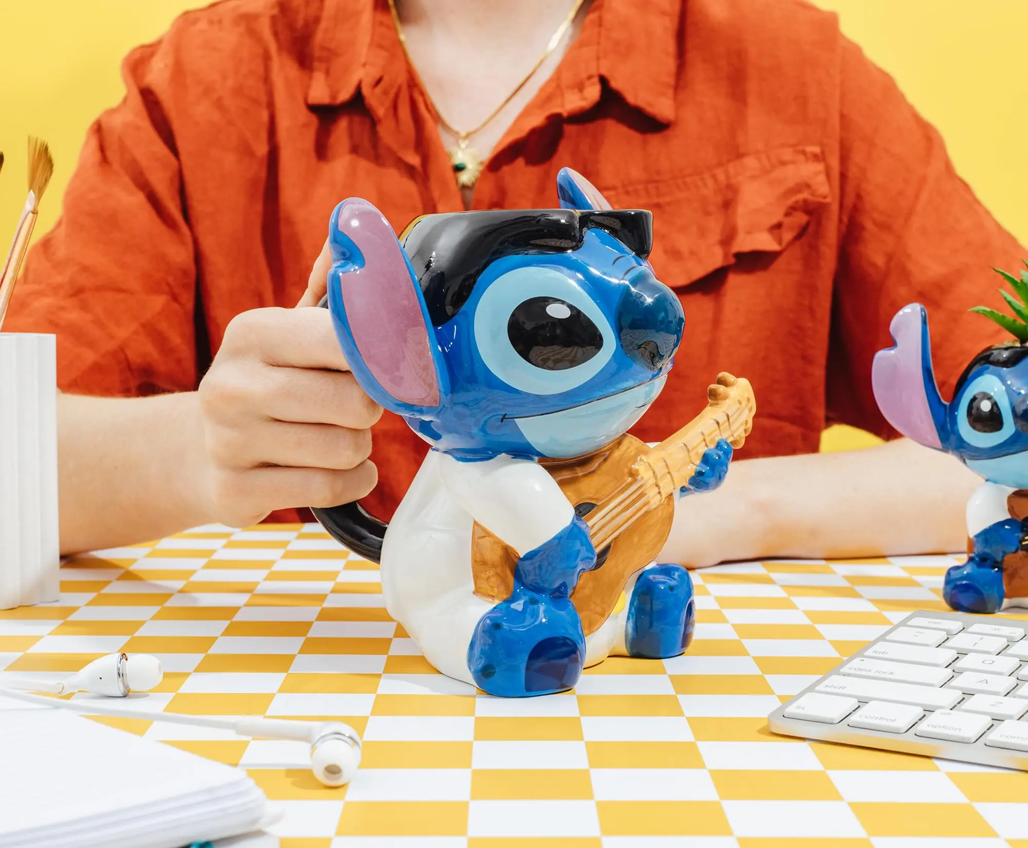Get ready to turn up the volume on your beverage game with this Rock Star Stitch sculpted ceramic mug—a bold, fun-loving tribute to everyone’s favorite intergalactic troublemaker from Disney's Lilo & Stitch. Designed for fans who love their coffee as loud and lively as their favorite alien, this approximately 20-ounce ceramic mug strikes a perfect chord between function, fandom, and fun.