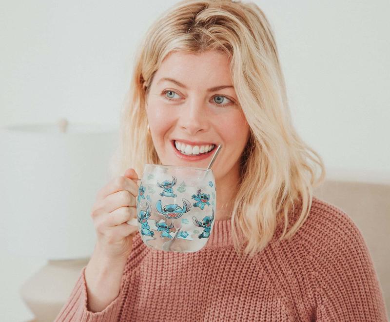 5. Disney Lilo & Stitch Expressions Glass Mug With Lid and Spoon | Holds 17 Ounces